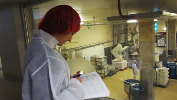 Frau Prohaska aus unserem Qualitätsmanagement, kontrolliert persönlich, ob alle Richtlinien eingehalten werden (Hygiene, technische Anlagen, IFS Zertifizierung usw.)