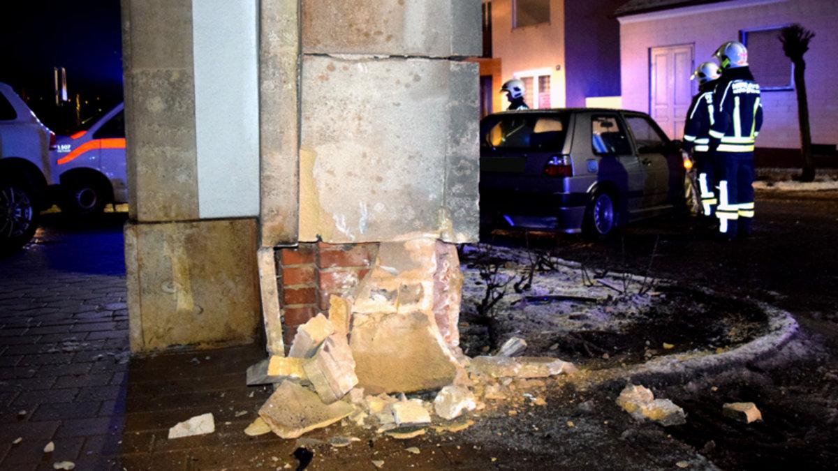 Alkoholisierter Autofahrer prallte gegen Rathaussäule