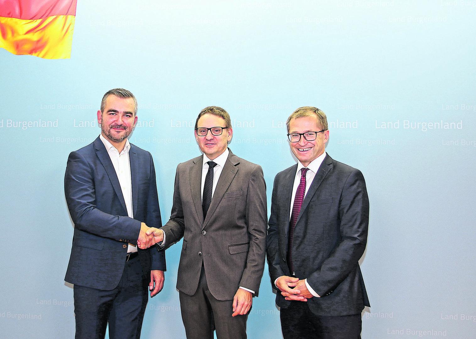 Hans Peter Rucker (re.) und Gerald Goger (Mitte) leiten ab 2024 gemeinsam die Landesholding (li. Landesrat Dorner)