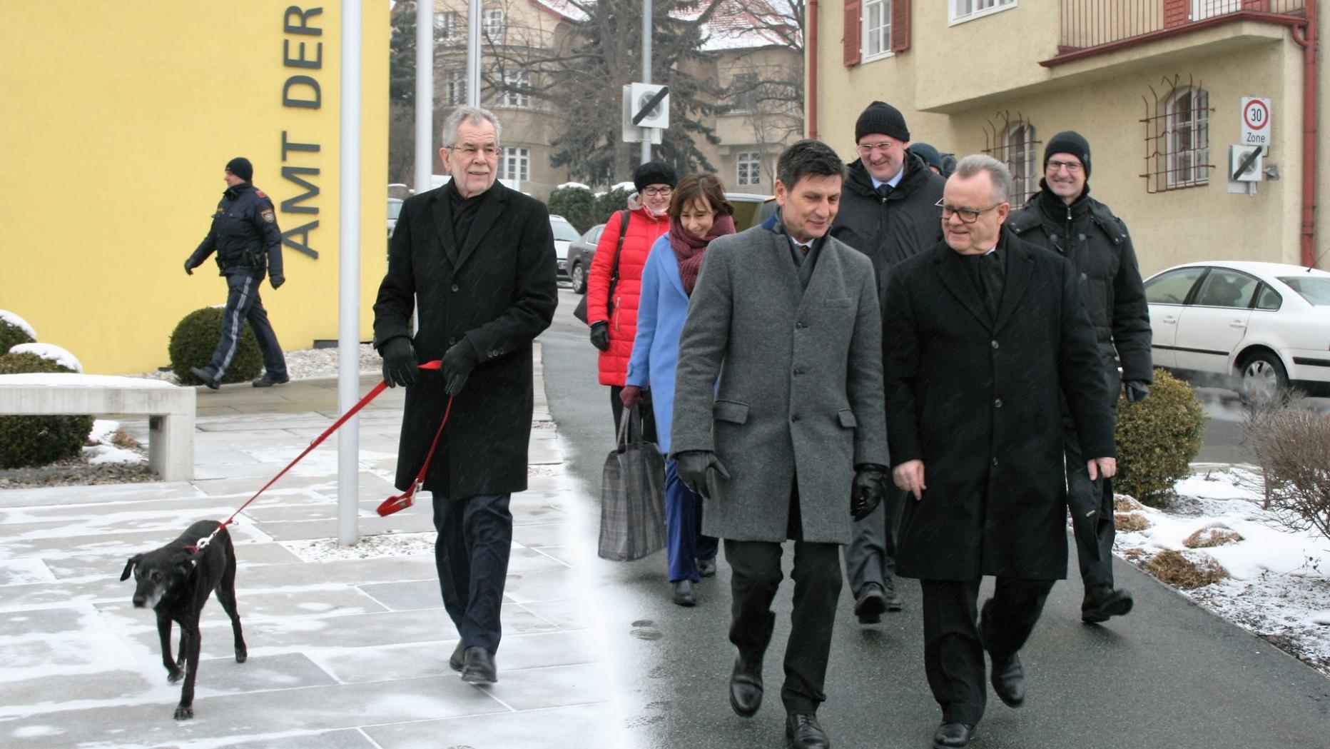 "Ich bin nur der Bundespräsident", schien sich Alexander Van der Bellen zu wundern, dass Burgenlands Honoratioren am Freitag fast vollzählig im Eisenstädter Schloss Esterházy angetreten waren, um dem ersten offiziellen Besuch des Staatsoberhaupts im Burgenland einen gediegenen Rahmen zu geben. Zuvor waren Van der Bellen (mit "First Dog" Kita), LH Hans Niessl, Landtagspräsident Christian Illedits (beide SPÖ) und Eisenstadts Bürgermeister Thomas Steiner (ÖVP) durch die ob der Kälte fast menschenleere Fußgängerzone spaziert. Im Schloss gab es dann nicht nur freundliche Worte von Niessl, der Van der Bellen als "unseren Bundespräsidenten" titulierte, sondern zur sichtlichen Freude des Staatsoberhaupts auch schwungvoll Klingendes von der Tamburizza Siegendorf. Am Nachmittag folgten ein Betriebsbesuch und ein Treffen mit Bürgermeistern.