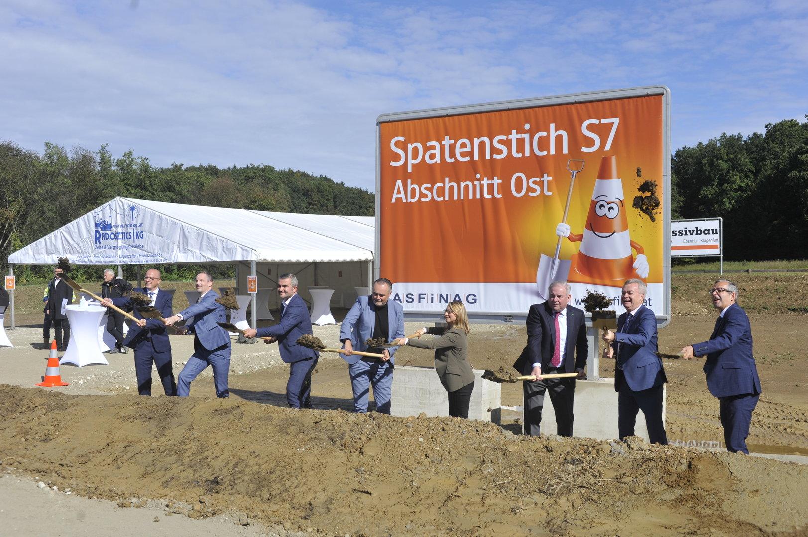 Bei der S7 wird zuerst der Abschnitt West von der A2 bis Rudersdorf fertiggestellt, der 2023 für den Verkehr freigegeben werden soll. Hier wird auch der erste Straßentunnel des Burgenlandes in Rudersdorf errichtet. Der nun offiziell begonnene Abschnitt Ost wird erst 2024 fertiggestellt.