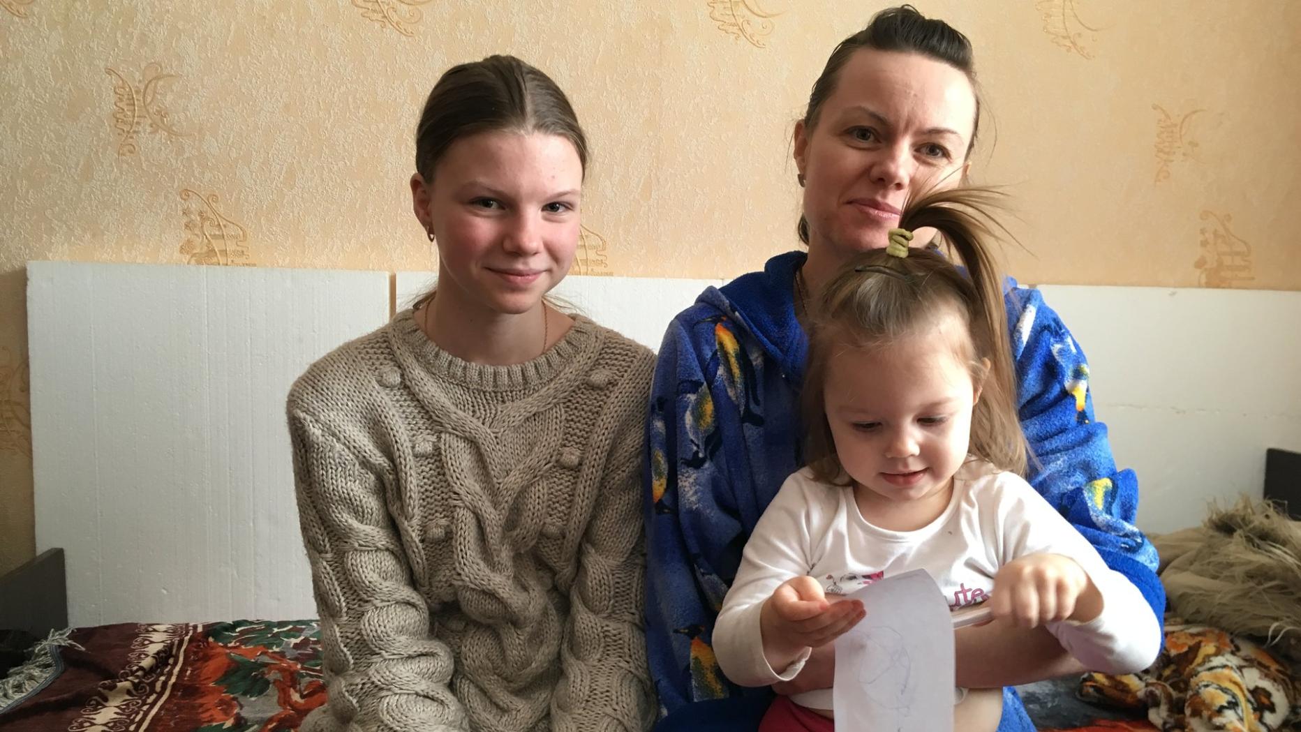 Es war 2014, als sich die damals schwangere Frau auf den Weg machte – quasi direkt aus dem Keller ihres Hauses in der Stadt Jenakijewe. In der Stille nach Artilleriebeschuss, vorbei an brennenden Häusern, brennenden Bussen. Mitgenommen hat sie nur, was sie tragen konnte. Ihre Tochter Katya hatte sie schon zuvor zu Freunden nahe Kiew geschickt. Und da ist sie nun, die Maschinenbau- und Bau-Ingeneurin mit ihren zwei Töchtern. Ohne Job. Katya hat Diabetes, Lewa ein Loch im Herz. Medikamente sind teuer, der Ärzte-Marathon ist zeitaufwendig, Arbeit ist rar und potenzielle Arbeitgeber scheinen eine alleinerziehende Mutter zweier kranker Kinder vor allem als Risiko zu sehen.