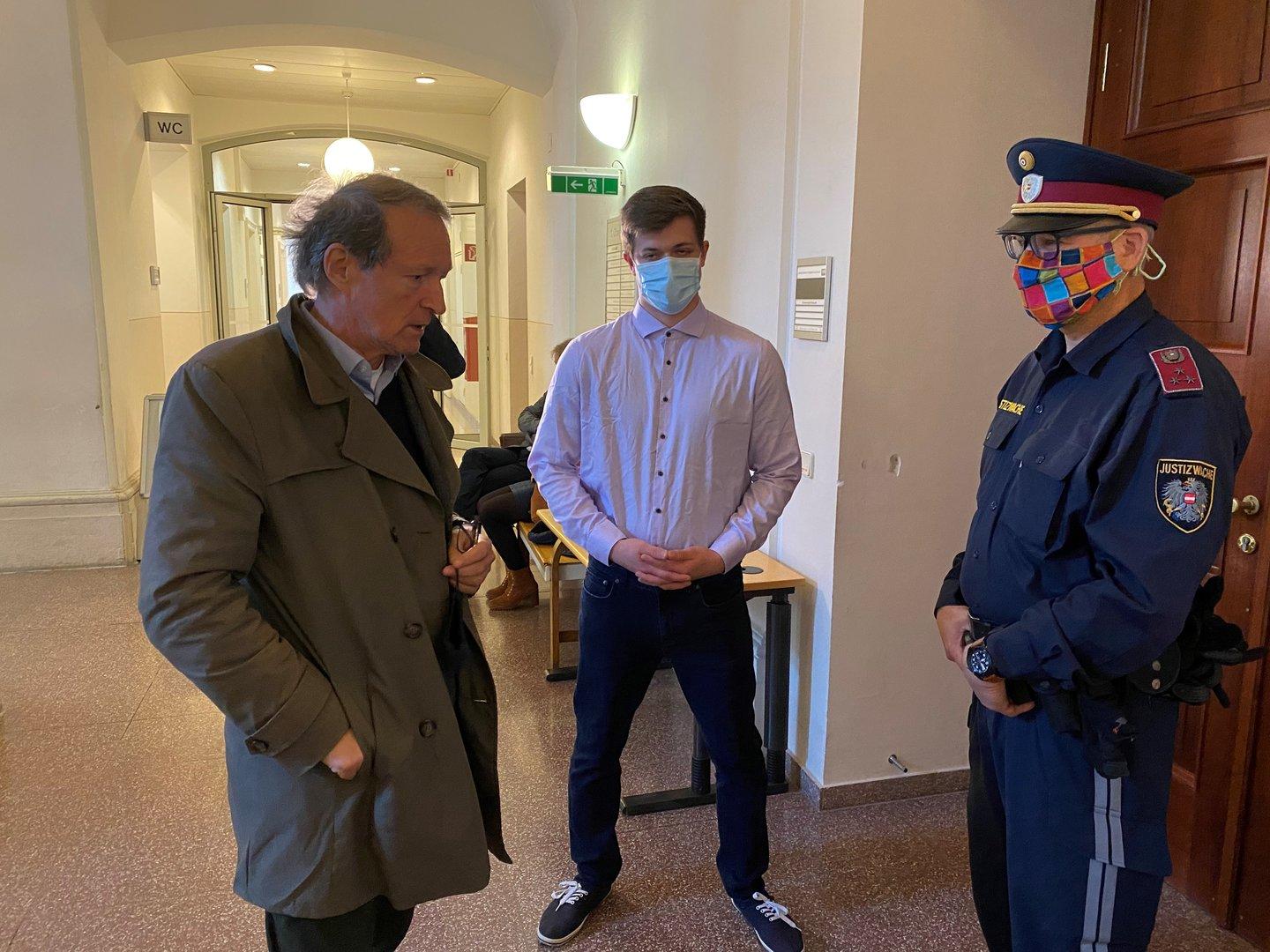 Verteidiger W. Blaschitz sieht die Ursache der Angriffe im Mix aus Tabletten und Alkohol. Adam H. (m.) kann sich an wenig erinnern