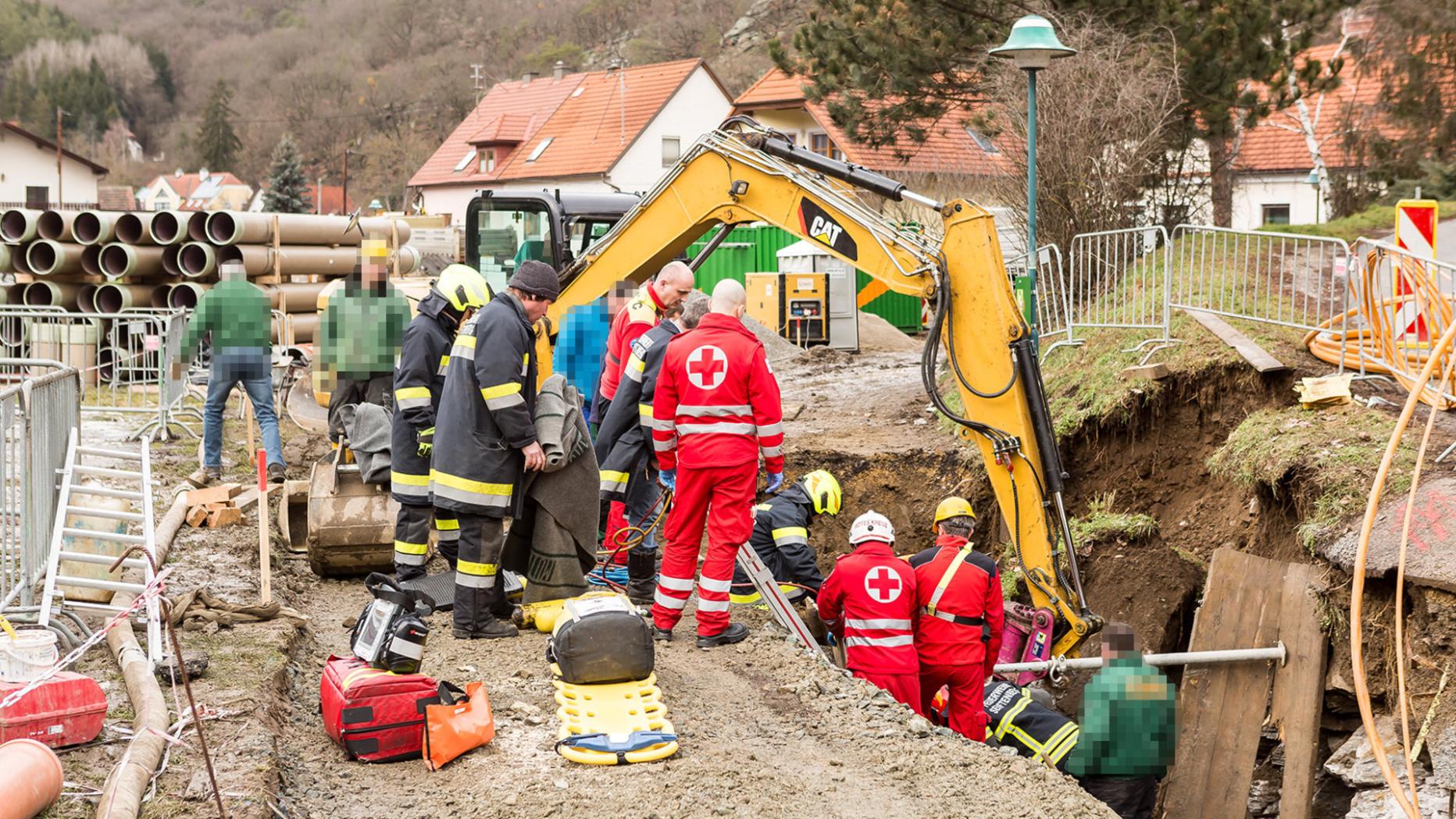 Die Kollegen des Verletzten hatten bereits mit einem Bagger en Felsbrocken vor einem weiteren Abrutschen gesichert. Ein Notarzt versorgte den Eingeklemmten noch in der Baugrube. Schließlich gelang es den Helfern gemeinsam mit den Bauarbeitern, den Verletzten zu befreien. Er wurde ins Universitätsklinikum Krems gebracht. Bei ihm sollen ein gequetscher Fuß und drei gebrochene Rippen festgestellt worden sein