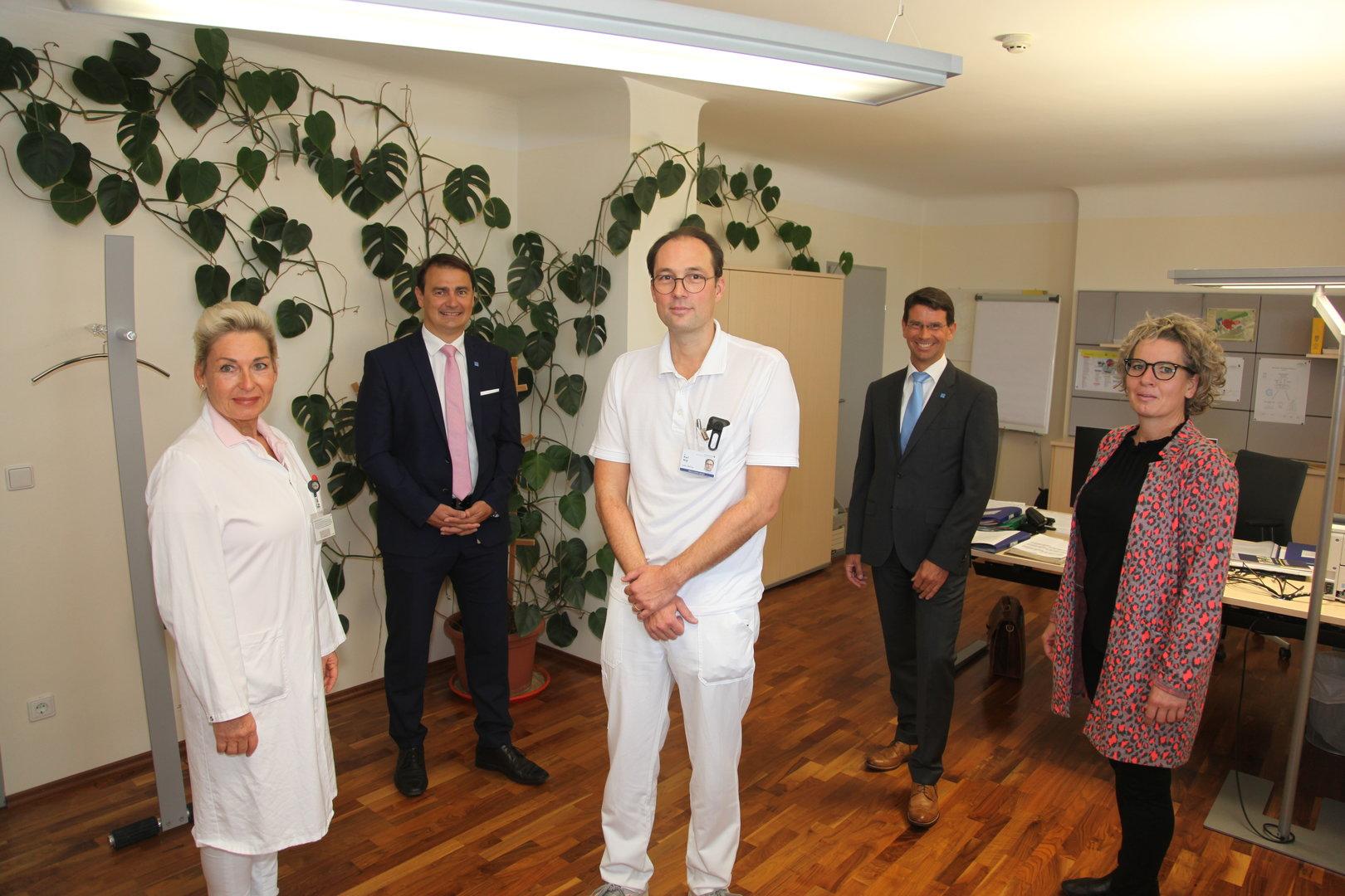 Die ärztliche Direktorin des Lk Wr. Neustadt, Angelika Karner-Nechvile, MSc, der Geschäftsführer der Gesundheit Thermenregion GmbH Ludwig Gold, Primar Karl Nigl, der kaufmännischer Direktor des Spitals, Andreas Gamlich und Pflegedirektorin Christa Grosz (v.l.n.r.)