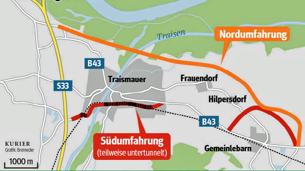 Lange redeten die Politiker über eine Umfahrung von Traismauer. Sehr lange. Die erste Variante stammt aus dem vorigen Jahrtausend. Im Lichte der Verkehrsprognosen wurde die Umfahrung wieder aktuell. 2025 sollen 26.000 Fahrzeuge auf der B 43 durch die Stadt unterwegs sein – wenn das Straßenprojekt nicht umgesetzt wird. Nun liegen zwei Trassen – eine umgeplante Nord- und eine Süd-Variante – auf dem Tisch. Die Bürger werden entscheiden, ob sie eine Umfahrung wollen und wenn ja, welche. Der Termin für die Volksbefragung steht allerdings noch nicht fest.