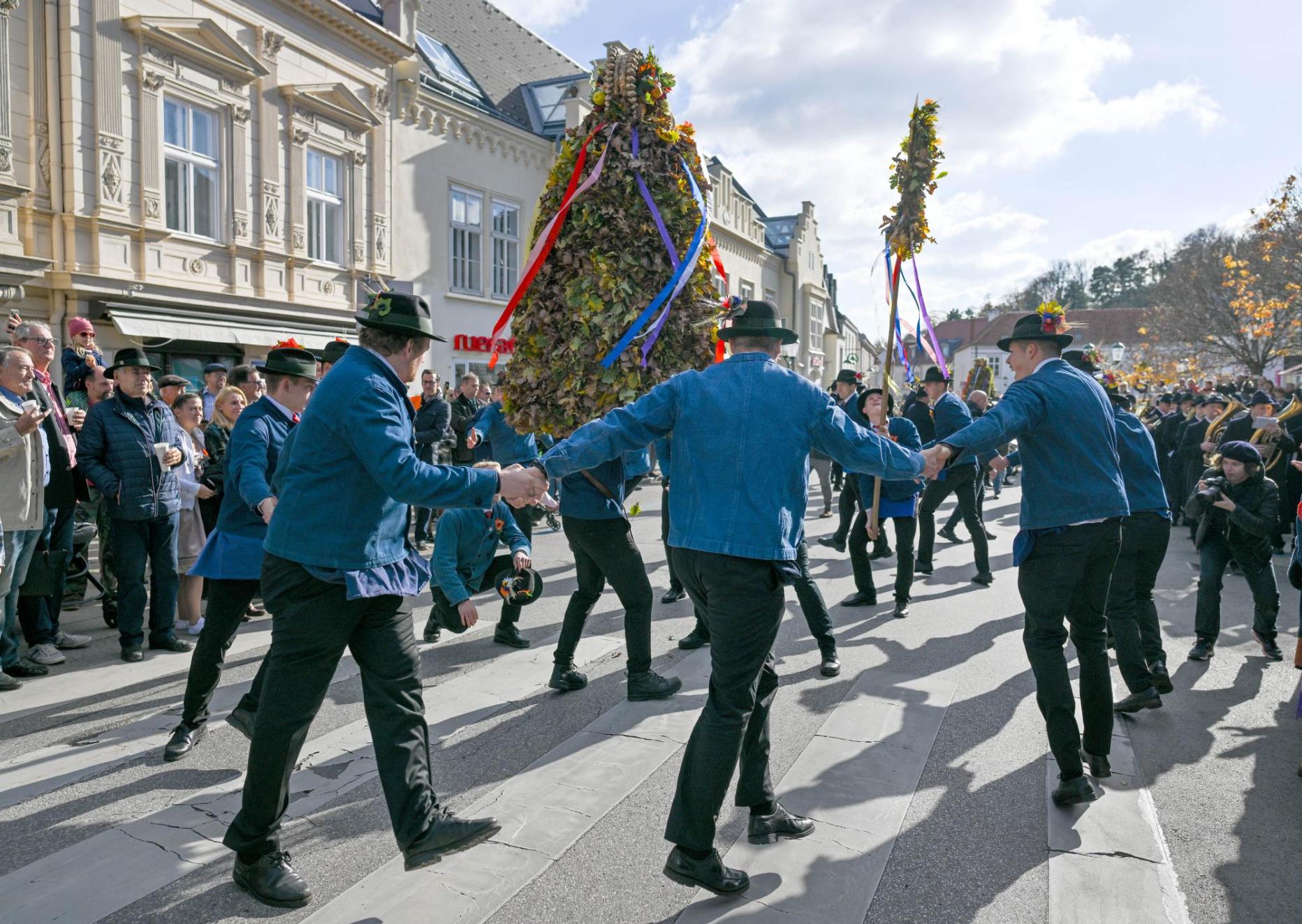 Der "Hiataeinzug" in Perchtoldsdorf ist das größte Erntedankfest Österreichs. Im Zentrum dieses Festes stehen alljährlich die Weinhüter, „Hiata“ genannt, die eine einzigartige Erntekrone, die so genannte „Pritschn“, mit einem prächtigen Einzug in die Kirche tragen.