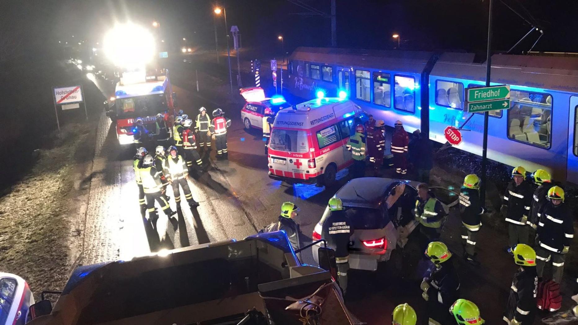 Ein schwerer Unfall ereignte sich Mittwochabend in Hofstetten/Grünau im Bezirk St. Pölten. Ein Autofahrer dürfte auf einem Bahnübergang die herannahende Mariazellerbahn übersehen haben, es kam zu einer Kollision. Der Zusammenstoß war so heftig, dass die beiden Pkw-Insassen in dem Fahrzeug eingeklemmt wurden.