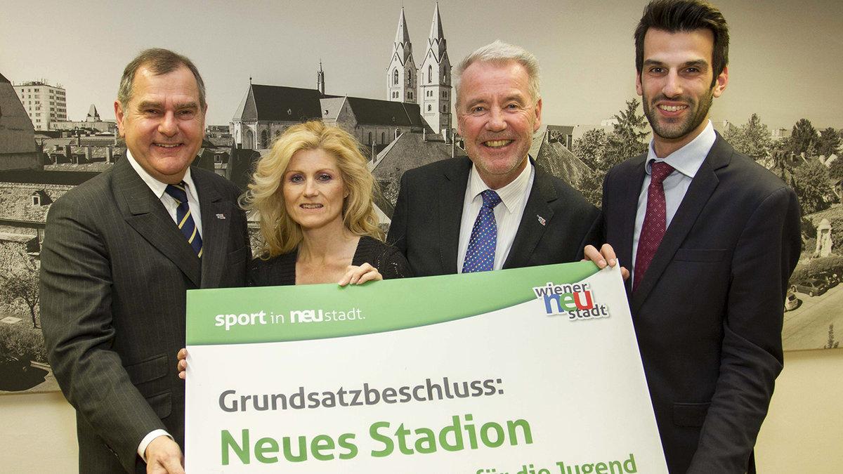 Die fast unendliche Geschichte zum Bau eines neuen Stadions in Wiener Neustadt hat ein Happy End. Die Stadt fasst am 23. Jänner im Gemeinderat einen Grundsatzbeschluss für den Bau eines 3500 Besucher fassenden Stadions samt Fußball-Trainingsplätzen neben dem Hallenbad „Aqua Nova“. Die Stadt deckt die Kosten für den Neubau durch die Verwertung und den Verkauf des alten Stadionareals. Die Kosten für die Errichtung wurden mit maximal acht Millionen Euro festgelegt. Ein Drittel der Summe wird vom Land Niederösterreich gefördert. Nach dem Grundsatzbeschluss soll ein Generalunternehmer mit der Umsetzung des Projekts beauftragt werden, gab die Stadt am Donnerstag bekannt.