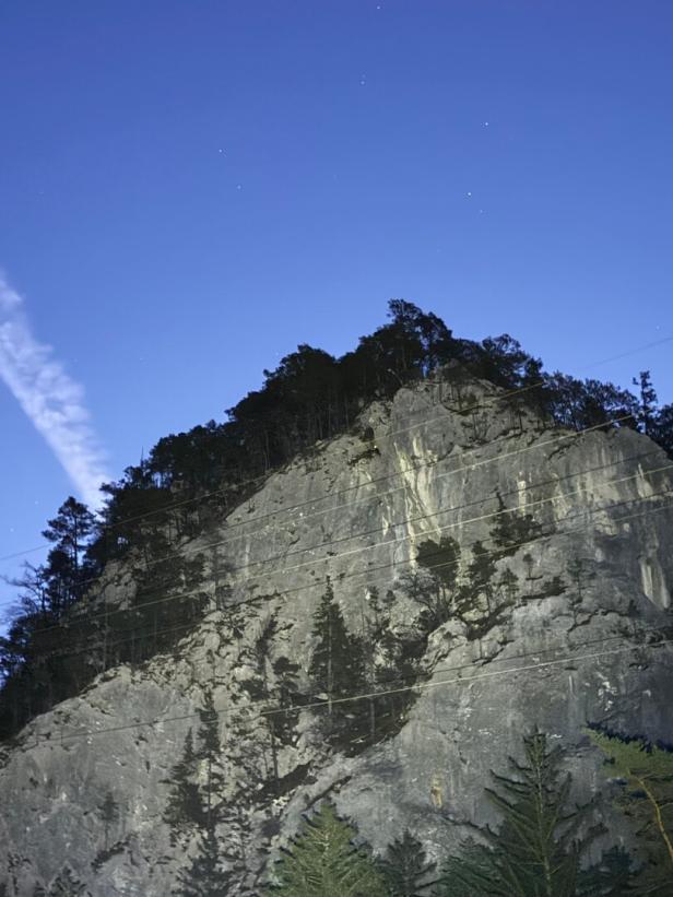 Im unwegsamen Gebirgshang, wo das Tier vermutet wurde, war dann immer wieder Mephistos jämmerliches Jaulen zu hören. Doch die Retter konnten das Tier nirgends sehen.