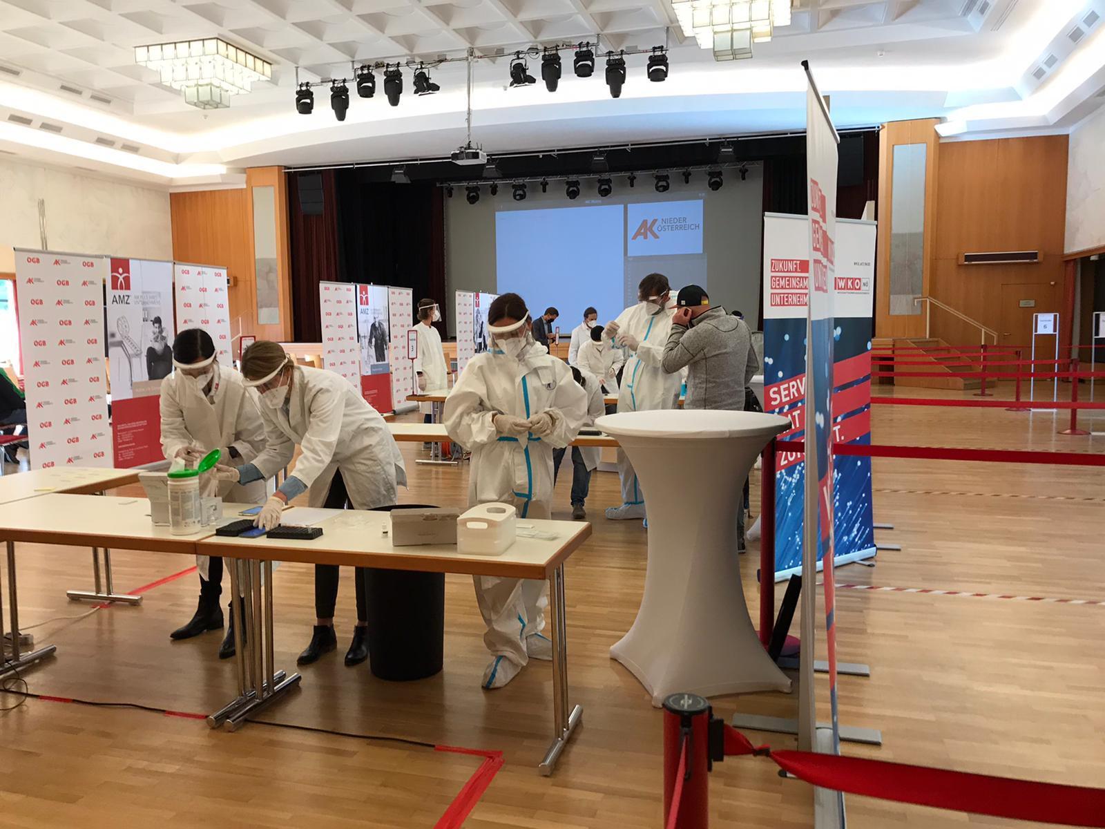 400 Anmeldungen gab es für die kostenlosen Schnelltests der Arbeiter- (AKNÖ) und Wirtschaftskammer NÖ (WKNÖ) am Freitag.