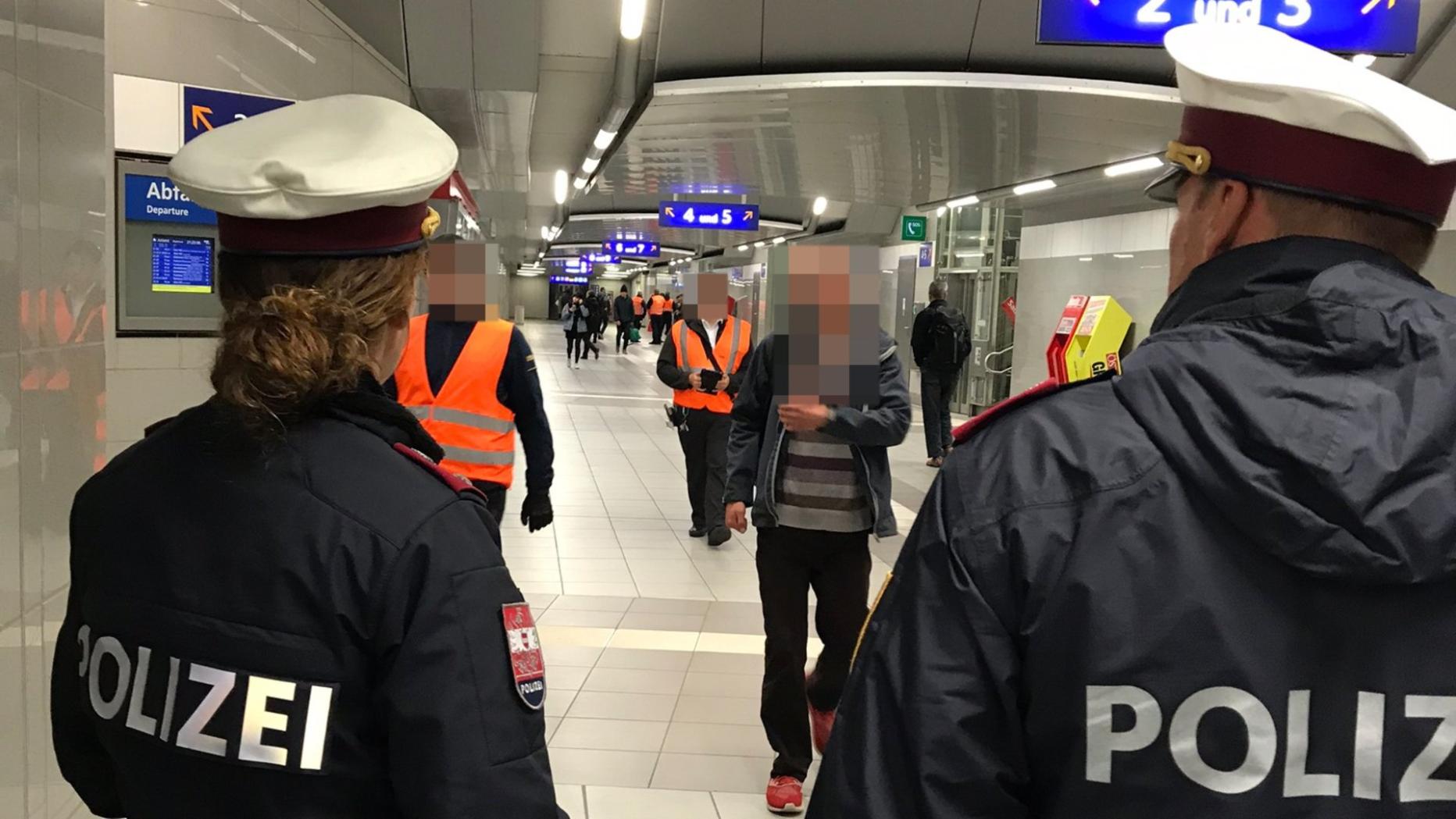 Aktion scharf der Polizei am Wiener Neustädter Bahnhof. Seit Mai vergangenen Jahres gab es beriets 600 Wegweisungen.