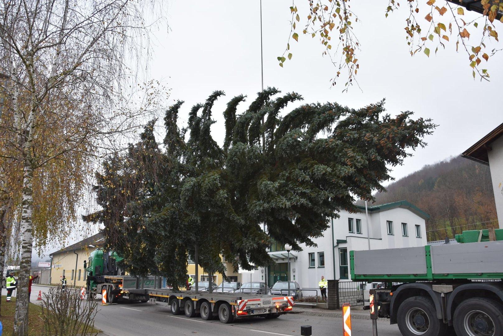 Großes Aufgebot Donnerstagfrüh in Kirchberg an der Pielach im Bezirk St. Pölten. Mit einem XXL-Laster wurde jener Baum abgeholt, der künftig den Rathausplatz in St. Pölten schmücken soll.