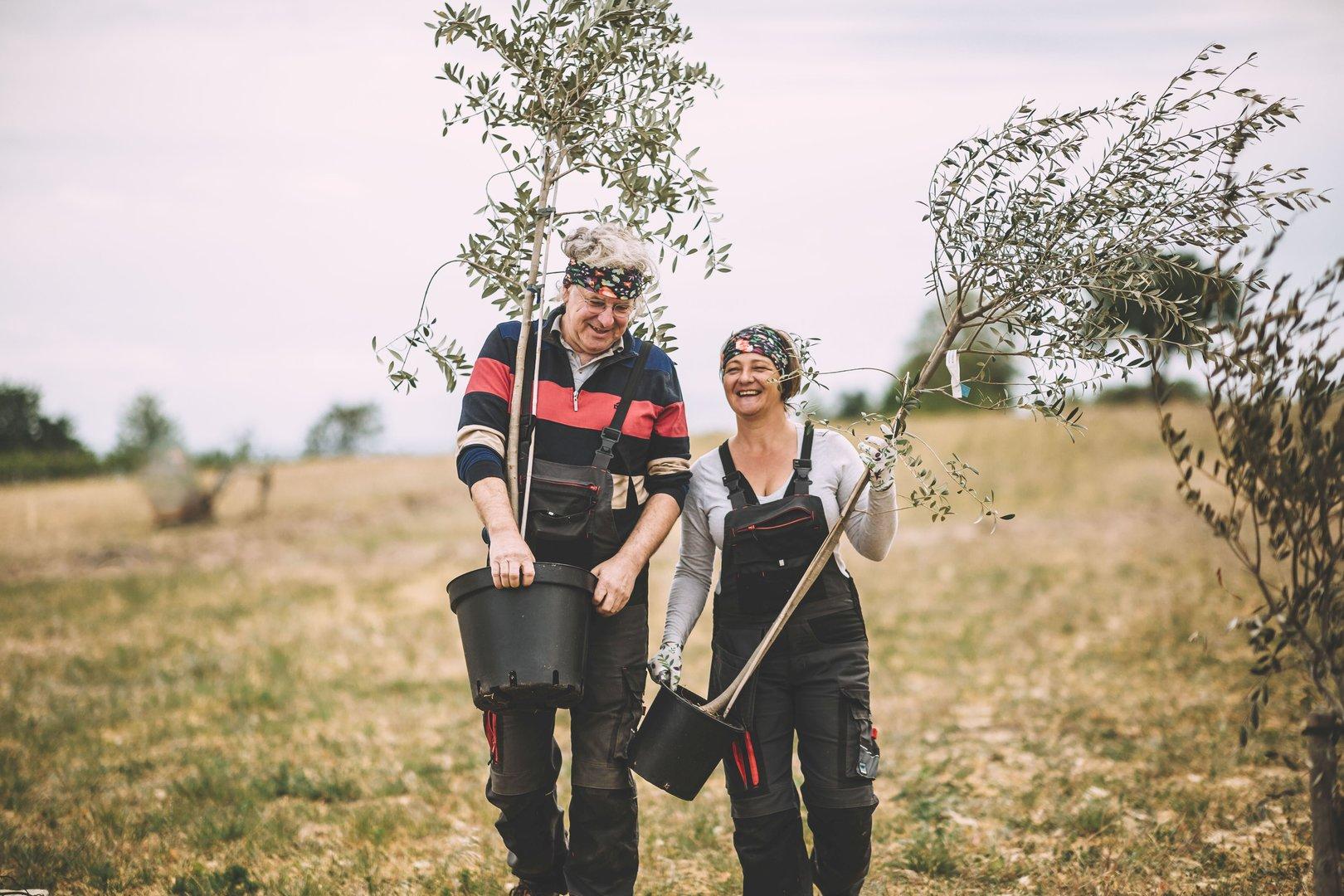 Gemeinsame Liebe: Franz Günther und Sabine Haiden aus Ulmerfeld haben in Mörbisch einen Olivenhain mit über 500 Bäumen gepflanzt