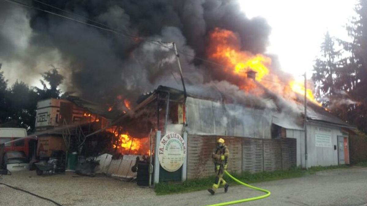 Die Feuerwehr-Leitstelle Ried war alarmiert worden, weil ein Benzinkanister umgefallen sei und Feuer gefangen habe. Binnen Minuten breitete sich der Brand aus. Laut Information der Feuerwehr standen rund 100 Autoreifen und Altöl in Brand. Vier Feuerwehren mit rund 80 Einsatzkräften waren im Löscheinsatz.