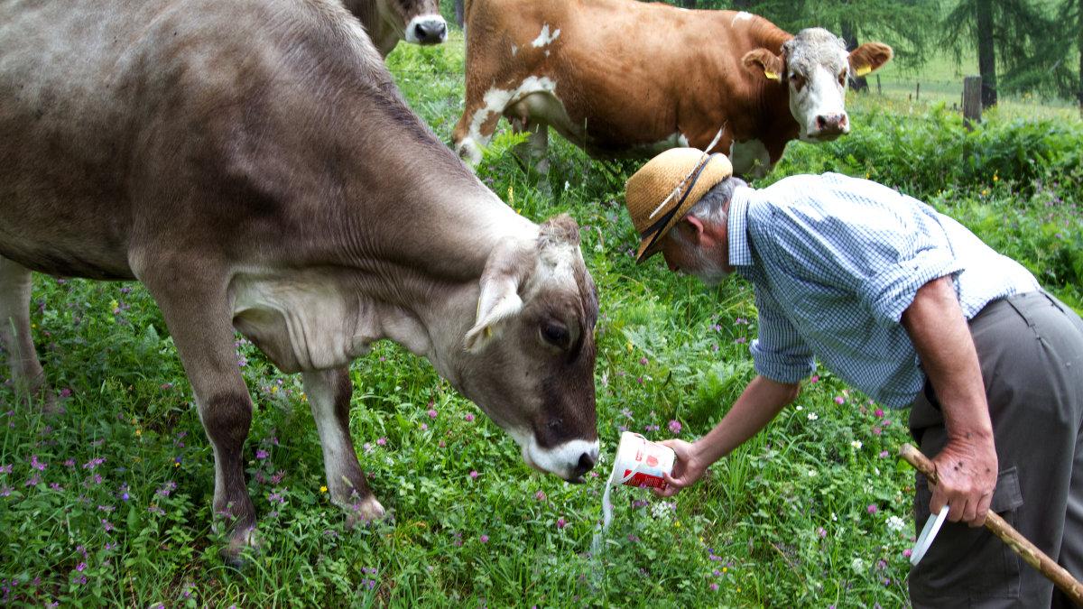 Seine Kühe und Ochsen erkennen ihn schon von Weitem am zerschlissenen Strohhut und traben in Vorfreude auf das Salz, das er in einem Joghurtkübel bei sich trägt, auf ihn zu. „Man fühlt sich wie ein Internatsleiter, der sich unter lauter Teenagern durchsetzen muss", scherzt der 65-Jährige, der bis zur Pension als Postler gearbeitet hat. Heute betreuen Franz und Gattin Barbara 72 Jungrinder von Mai bis Ende September in der Schafferreith im Gemeindegebiet von Hinterstoder.