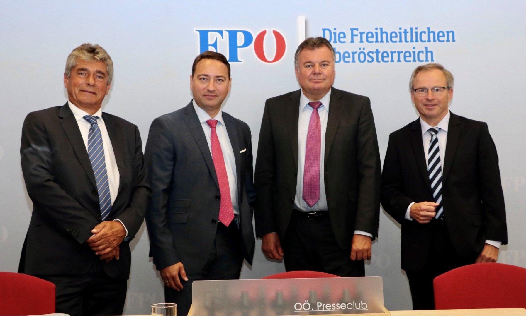 Stolzen Schrittes traten sie am Donnerstag vor die Medienvertreter: Landeshauptmann-Stellvertreter Manfred Haimbuchner, Verkehrslandesrat Günther Steinkellner, Sicherheitslandesrat Wolfgang Klinger und Klubobmann Herwig Mahr. Gefolgt von ihren Pressesprechern – alle männlich.