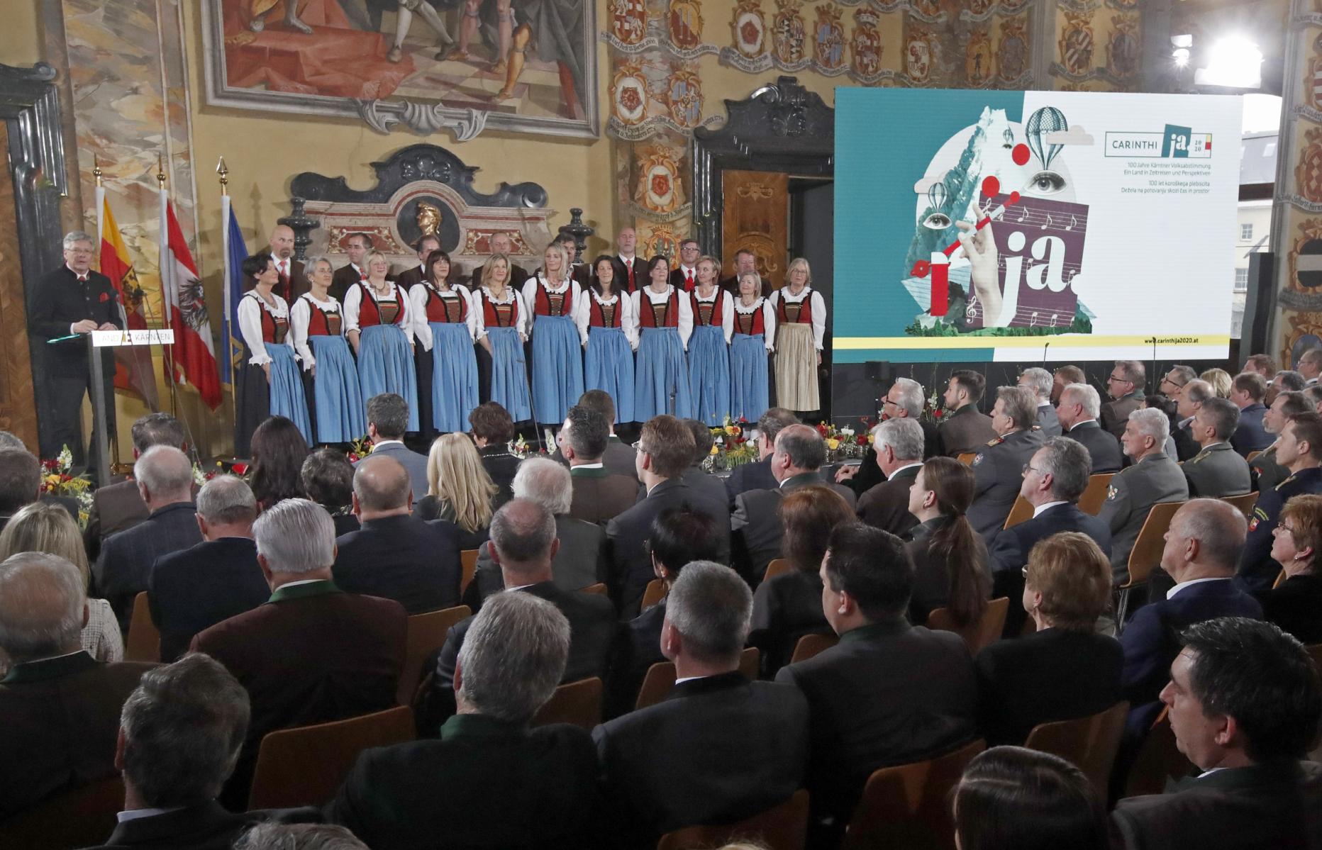 Das Landhaus wird auch am eigentlichen Jubiläumstag, dem 10. Oktober, im Mittelpunkt stehen. Nach einem Ökumenischen Gottesdienst im Klagenfurter Dom beginnt um 10.30 Uhr die Festsitzung der Kärntner Landesregierung und des Kärntner Landtages im Wappensaal.
