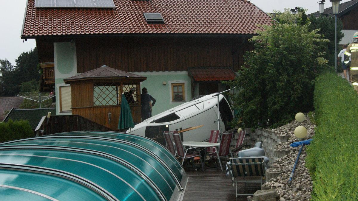 Nicht schlecht staunten die Besitzer eines Hauses am Samstagmorgen in Straßwalchen im Salzburger Flachgau. Eingekeilt zwischen einer Mauer und dem Swimmingpool der Familie steckte ein Kombi fest. Vom Lenker fehlte jede Spur. Wie sich später herausstellte, war der 23-Jährige betrunken von der Straße abgekommen und hatte sich danach aus dem Staub gemacht. Unfalllenker und Beifahrer blieben unverletzt.