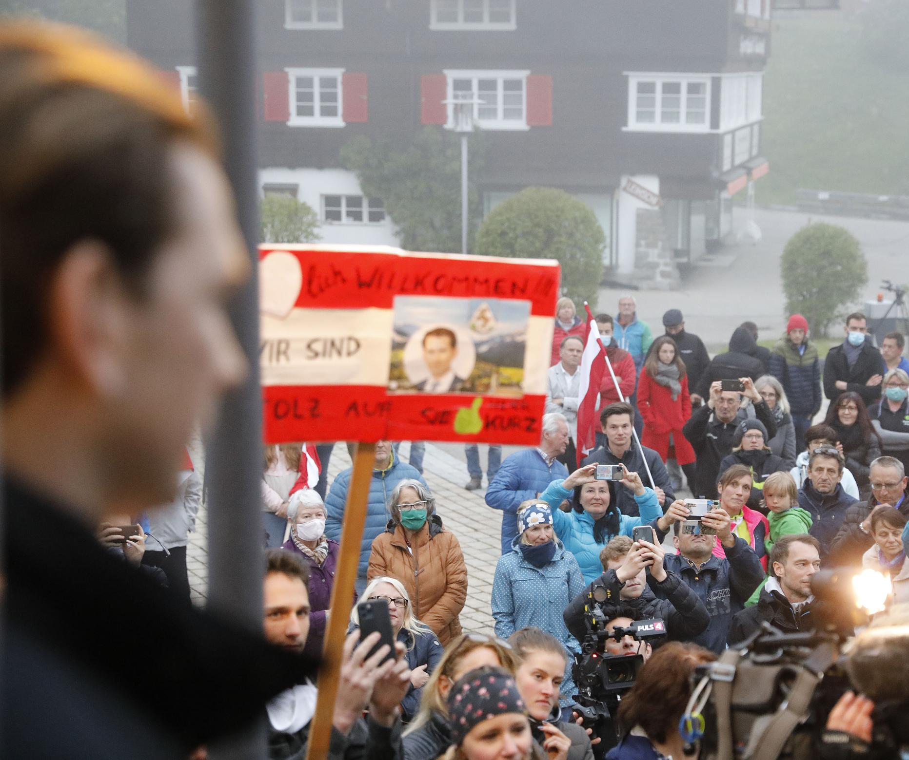 Ein Bild aus den frühen Tagen der Corona-Pandemie: Der Besuch von Bundeskanzler Sebastian Kurz im Kleinwalsertal sorgte Mitte Mai für Kritik, weil Sicherheitsabstände nicht eingehalten worden waren.