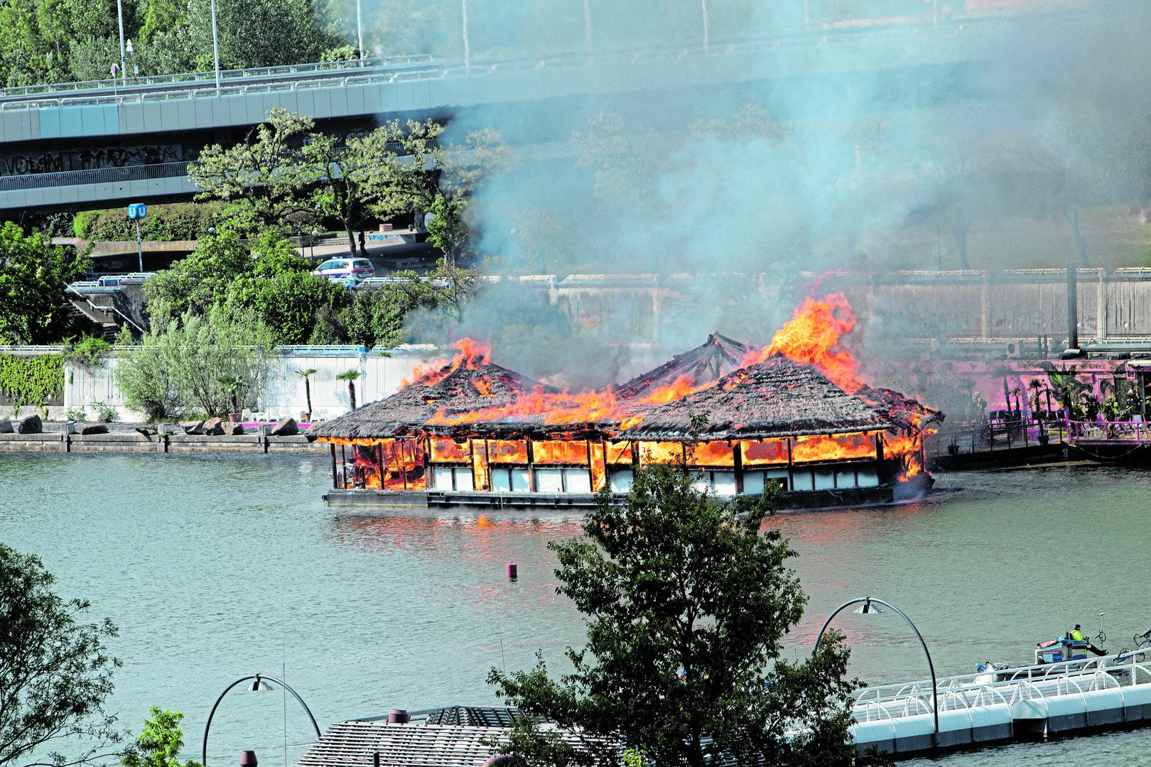 Es dauerte ziemlich genau 25 Minuten vom ersten Glosen bis zum kompletten Niederbrennen der Sansibar. Das ergaben die ersten Analysen der Videoaufnahmen von dem Großbrand vergangene Woche auf der Donauinsel. Noch sind die offiziellen Untersuchungen der Polizei im Laufen, allerdings gibt es schon erste Erkenntnisse: