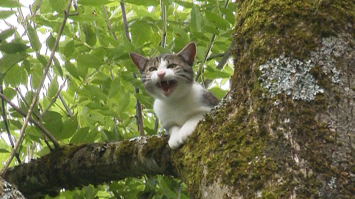 Ein herzzerreißend maunzendes Kätzchen hat am Samstag die Feuerwehr im steirischen Göbming auf den Plan gerufen: Die Samtpfote war auf einen Baum geklettert und traute sich aus rund zehn Metern Höhe nicht mehr herunter. Eine Spaziergängerin rief die Helfer, die per Kran die verängstigte Mietze retteten.