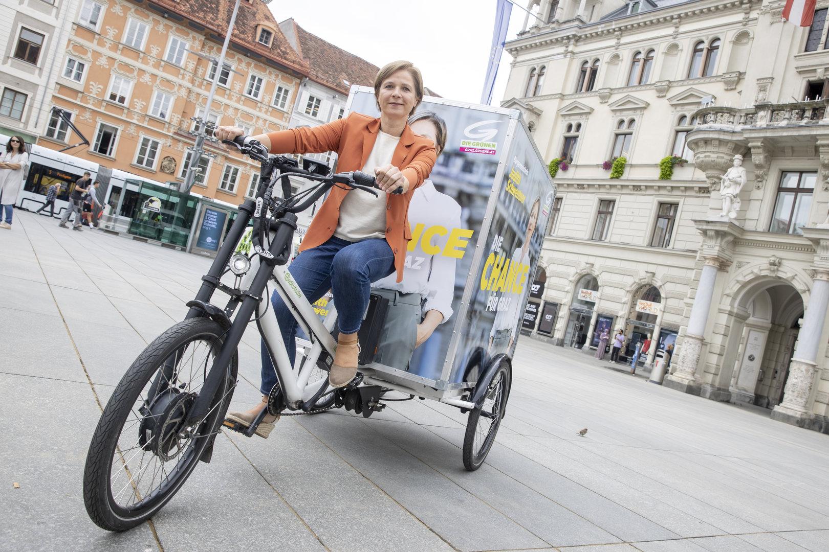 Graz-Wahl: Grüne Spitzenkandidatin radelt als „Bürgermeisterin“