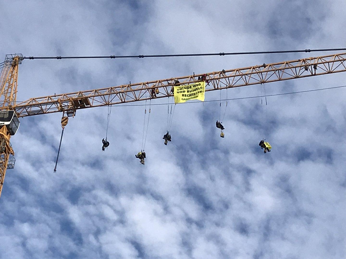 Umweltorganisationen steigen gegen Einschränkung von Bürgerrechten auf die Barrikaden – bzw. Kräne.
