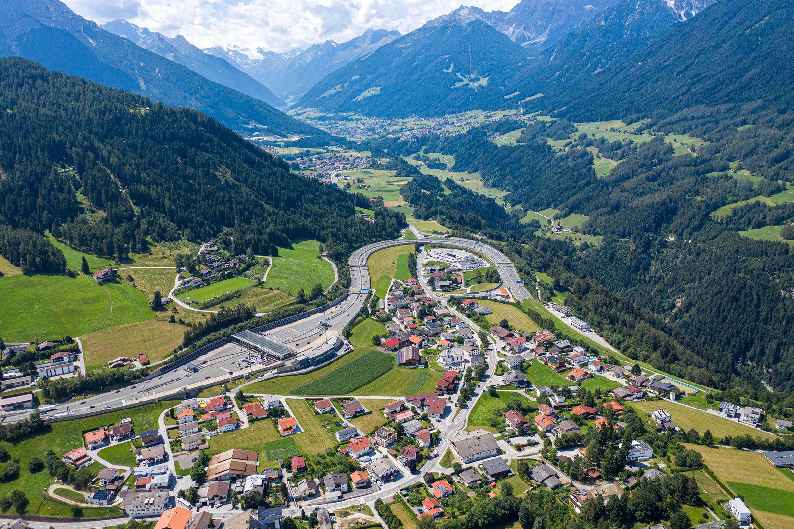 In Schönberg schlingt sich die Brennerautobahn regelrecht um das Dorf