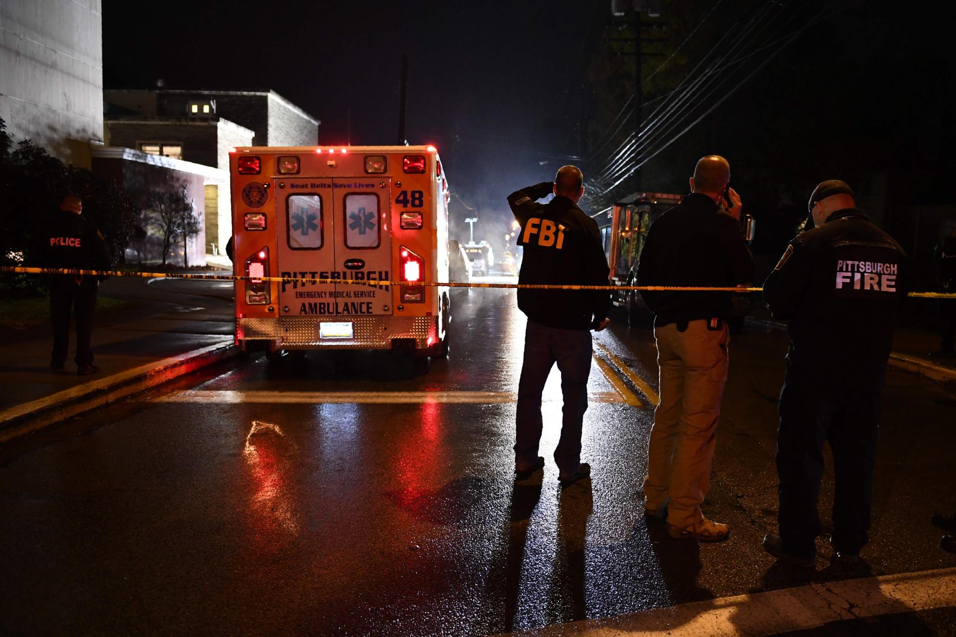 Der Täter war angeblich 20 Minuten lang in der Synagoge. Die Schüsse sollen im zweiten Obergeschoß des Gotteshauses gefallen sein. Als er die Synagoge im Viertel Hill, einer Gegend, wo auch viele Menschen jüdischen Glaubens wohnen, verlassen wollte, sei der Schütze laut FBI mit einem Polizisten zusammengetroffen und wieder zurück ins Gebäude gegangen sein.