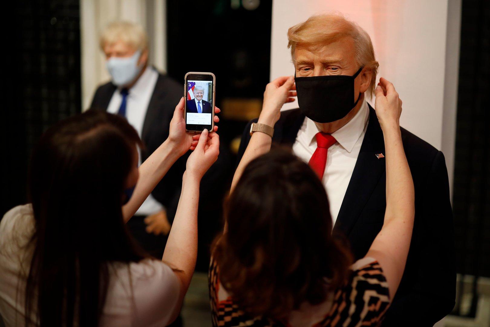 Im Londoner Wachsfiguren-Kabinett Madame Tussauds ist Donald Trump vom US-Präsidenten zum Golfer umgestaltet worden. Mit roter Mütze (Aufschrift: "Trump 2020 - Make America Great"), lavendelfarbigem Shirt, schriller Hose und grimmigem Gesichtsausdruck steht die Figur nun neben einer großen Golftasche. Vorher trug Trump noch einen dunklen Anzug und eine rote Krawatte.
