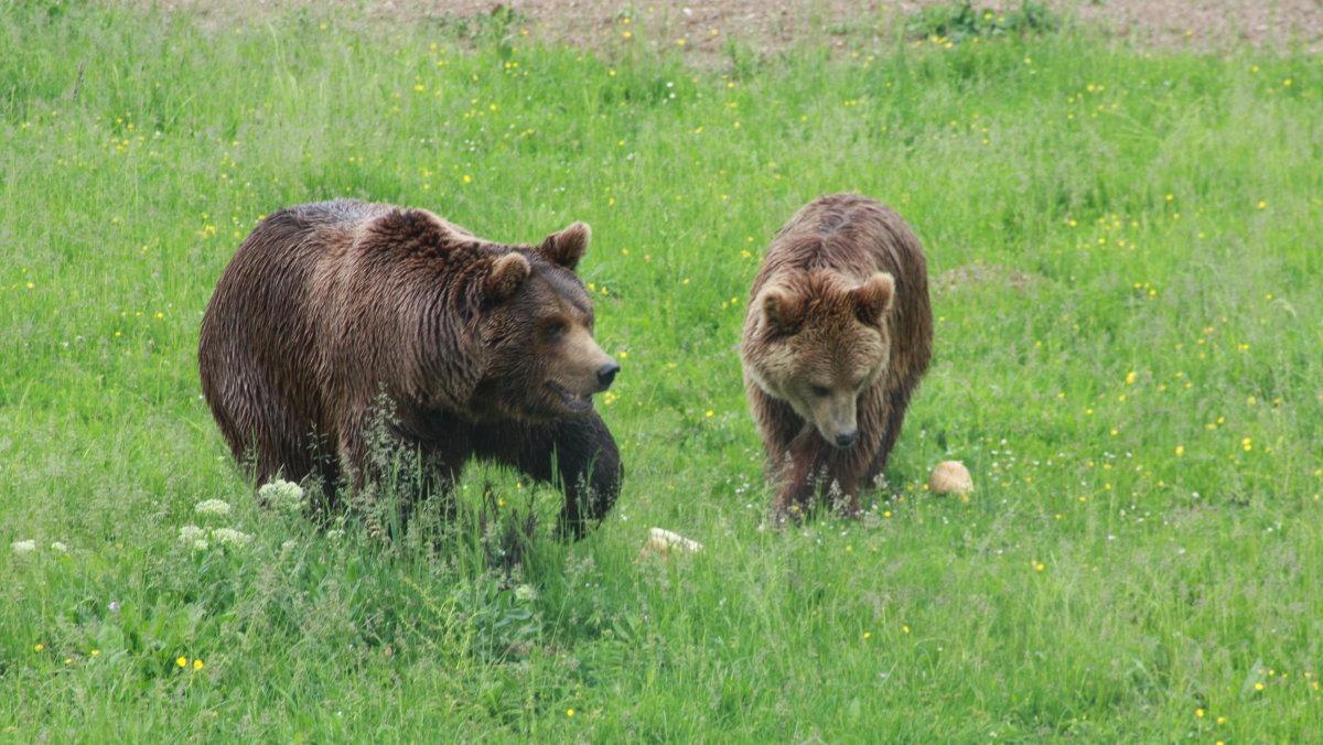 Für Ari, Arina und Kassandra öffnet sich am Freitag zum ersten Mal in ihrem Bärenleben das Tor zu einer Wiese. Während Kassandra viele Stunden braucht, um sich aus ihrem Gatter zu wagen, marschiert das Geschwisterpaar drauf los. Der weiche Wiesenboden unter den Tatzen, die Bäume und ihre wackelnden Äste, das Wasser und die Erde – es dauert nur Momente und Ari und Arina toben, springen, drehen sich und hüpfen, dass ihren Betreuern draußen vor dem Maschendrahtzaun die Tränen in die Augen schießen. Irgendwann riskiert auch Kassandra einen Blick: Nie zuvor hat sie einen anderen Bären gesehen.
