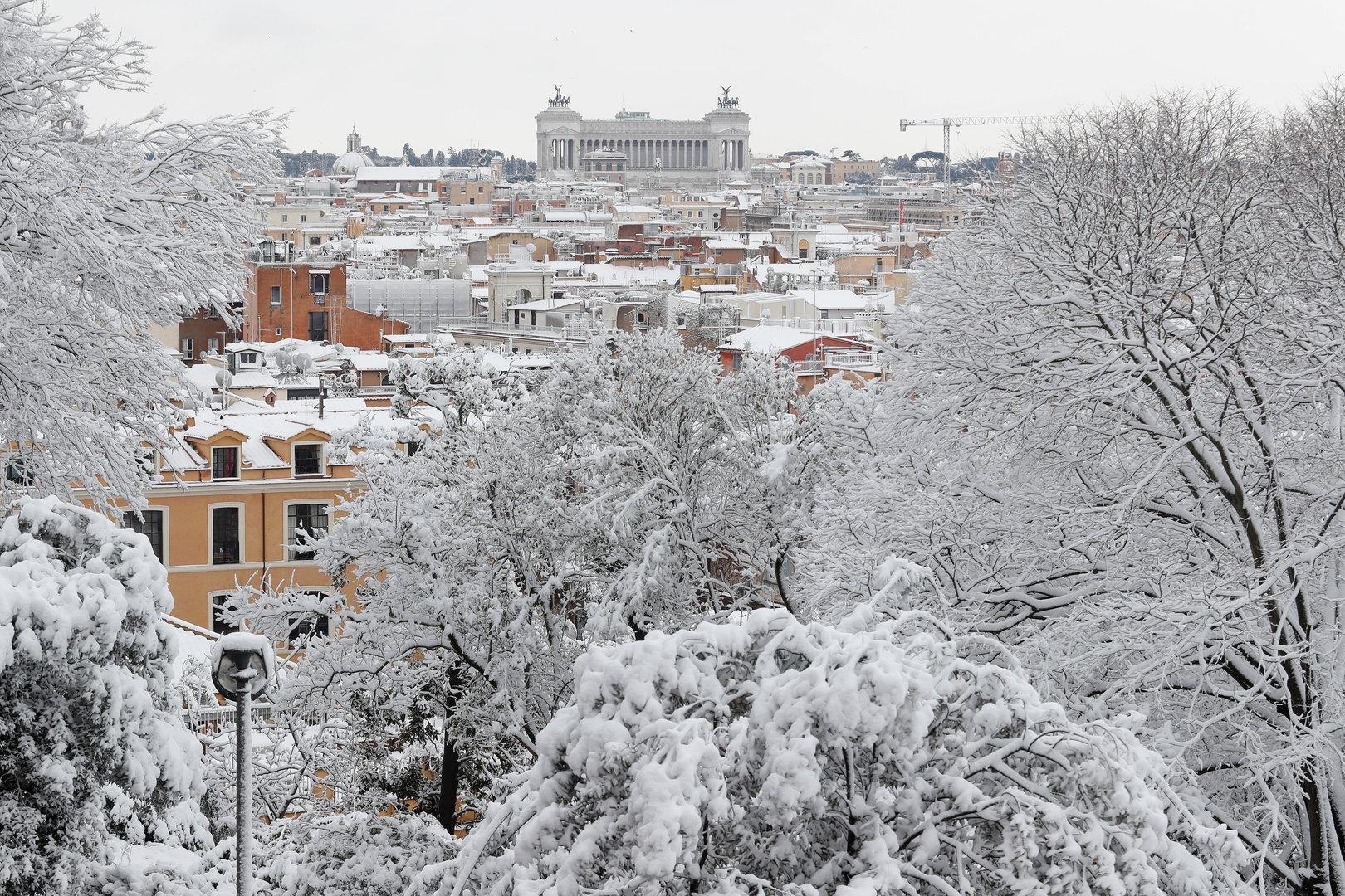 Der Traum aller Kinder: Viele Schulen hatten wegen des Schneefalls geschlossen. Schneemann-Bauen mit Blick auf die Kuppel des Petersdoms ist wohl ein würdiges Ersatzprogramm