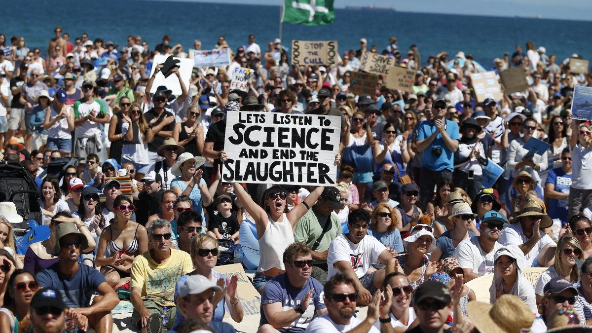 © APA/EPA/THERON KIRKMANTausende haben in Australien gegen die umstrittene Jagd auf Haie vor der Westküste protestiert.