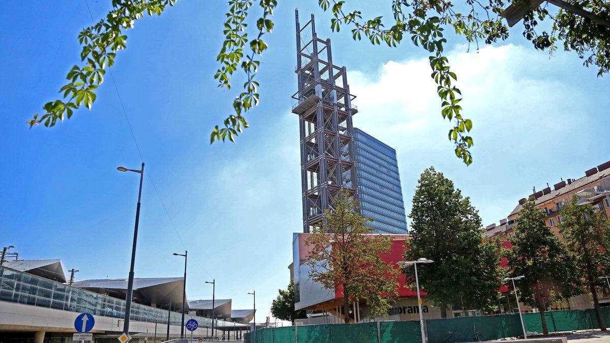 350.000 Besucher genossen von seiner Plattform den Panoramablick über Österreichs größte Baustelle, mittlerweile ragt er seit Monaten verlassen in den Himmel und verzögert die Nachnutzung des Grundstücks: Der 66 Meter hohe "Bahnorama"-Holzturm am Hauptbahnhof. Errichtet von der Stadt Wien und den ÖBB, diente er bis Ende 2014 als Baustellen-Infozentrum und beliebte Aussichtsplattform.