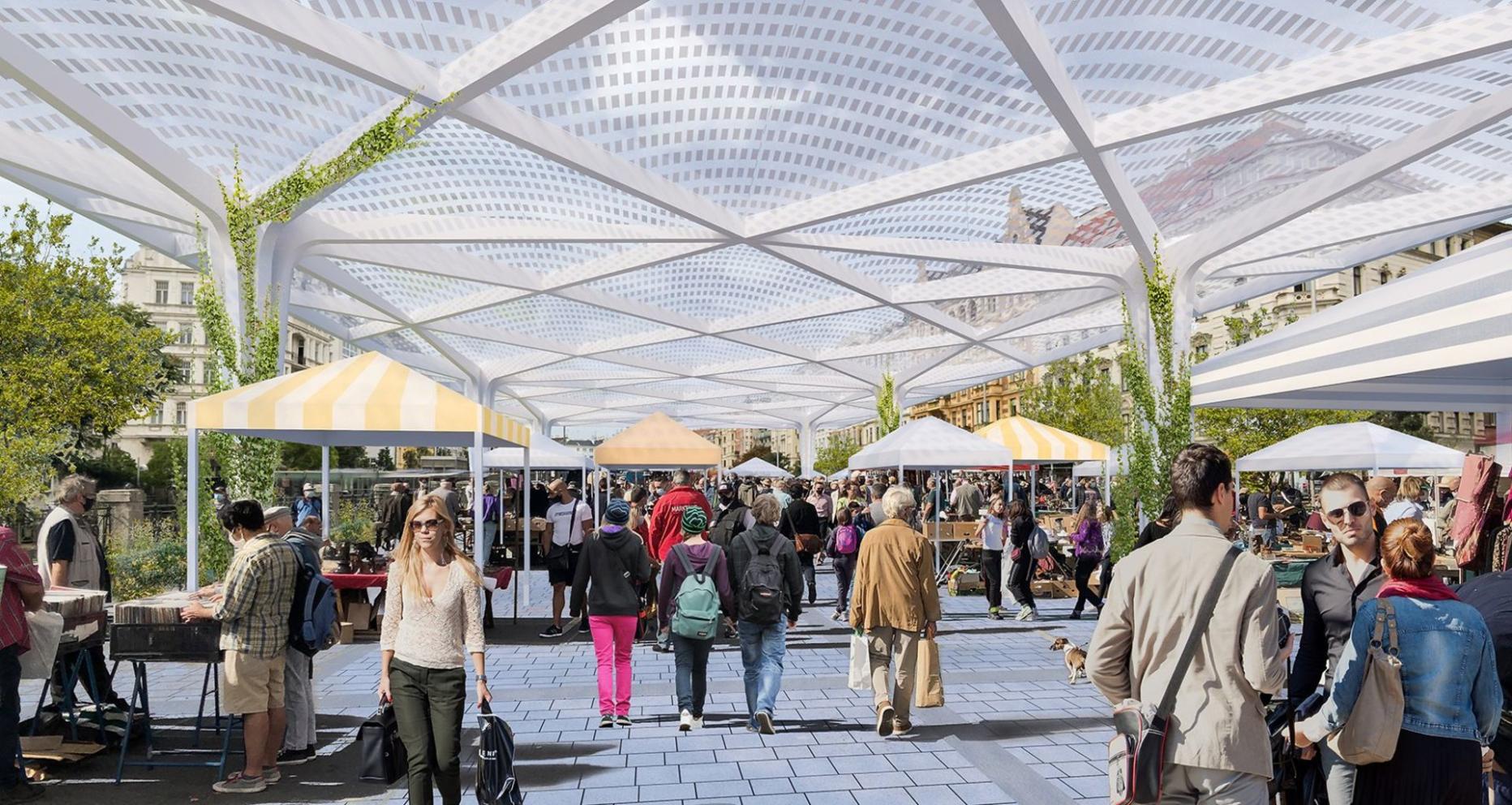 Die 10.000 Quadratmeter große Fläche soll begrünt werden, die Halle seitlich offen sein. Vorbild ist der Londoner Borough Market