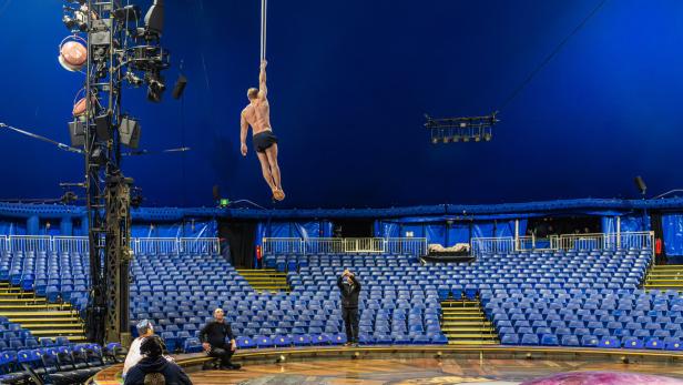 Bei einer spektakulären Seilnummer ist ein Artist aus größerer Höhe abgestürzt – und zwar mangels Sicherheitsnetz direkt auf den Holzboden. "Er ist auf dem Brustkorb aufgeschlagen, es hat wirklich übel ausgesehen", schildert die Besucherin gegenüber dem KURIER.
