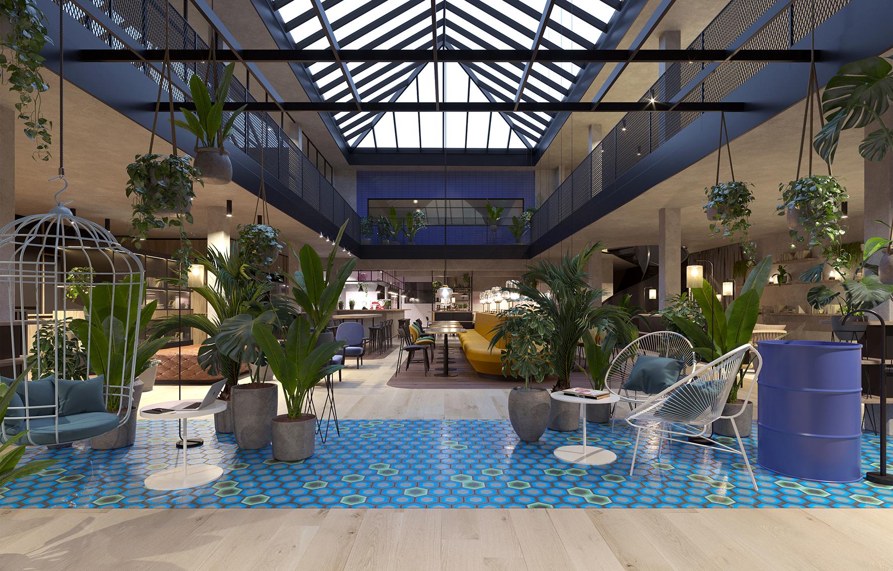Verbunden sind die Trakte durch einen glasüberdachten Innenhof, der das Herzstück des neuen Hotels sein soll. Pflanzen, ein offener Kamin sowie ein Shop – der Wiener Produkte bietet – finden hier Platz.
