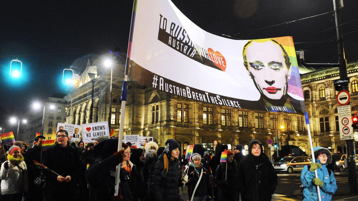 Zu der Kundgebung aufgerufen hatten mehrere Organisationen, darunter die Homosexuellen-Initiative (HOSI Wien) und das Rechtskomitee Lambda. Die Demonstranten forderten in Parolen lautstark die Wahrung der Menschenrechte von Schwulen und Lesben in Russland ein.