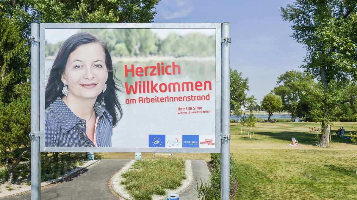 Man nehme etwa das Arbeiterstrandbad. Lange Zeit war es nur für wenige Menschen zugänglich. Dann verlängerte die Stadt den Pachtvertrag nicht mehr und stellte das Bad der Öffentlichkeit zur Verfügung. Damit das neue Bad auch von allen Wienern gefunden wird, steht am Eingang eine große Tafel. "Herzlich Willkommen am ArbeiterInnenstrand" ist darauf zu lesen, daneben ein großes Porträt von Sima. Kein Einzelfall. Einige Schritte weiter erklärt Sima auf einer Übersichtstafel alle Stationen an der Alten Donau. In der Donaustadt lädt sie in den Motorik-Park, auf Schautafeln der MA48 ruft sie zur Mülltrennung auf.