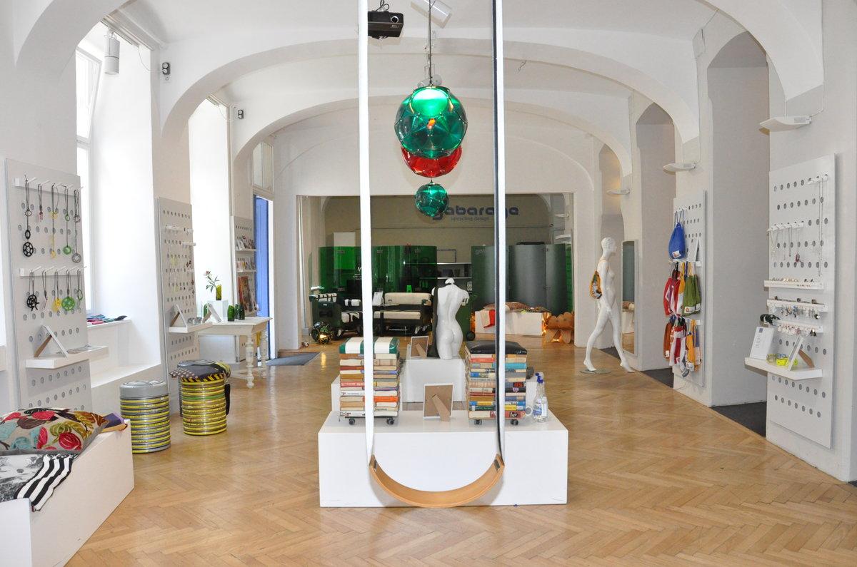 Der Showroom von Gabarage. FĂĽr die Schaukel im Vordergrund wurde ein alter Feuerwehrschlauch verwendet.