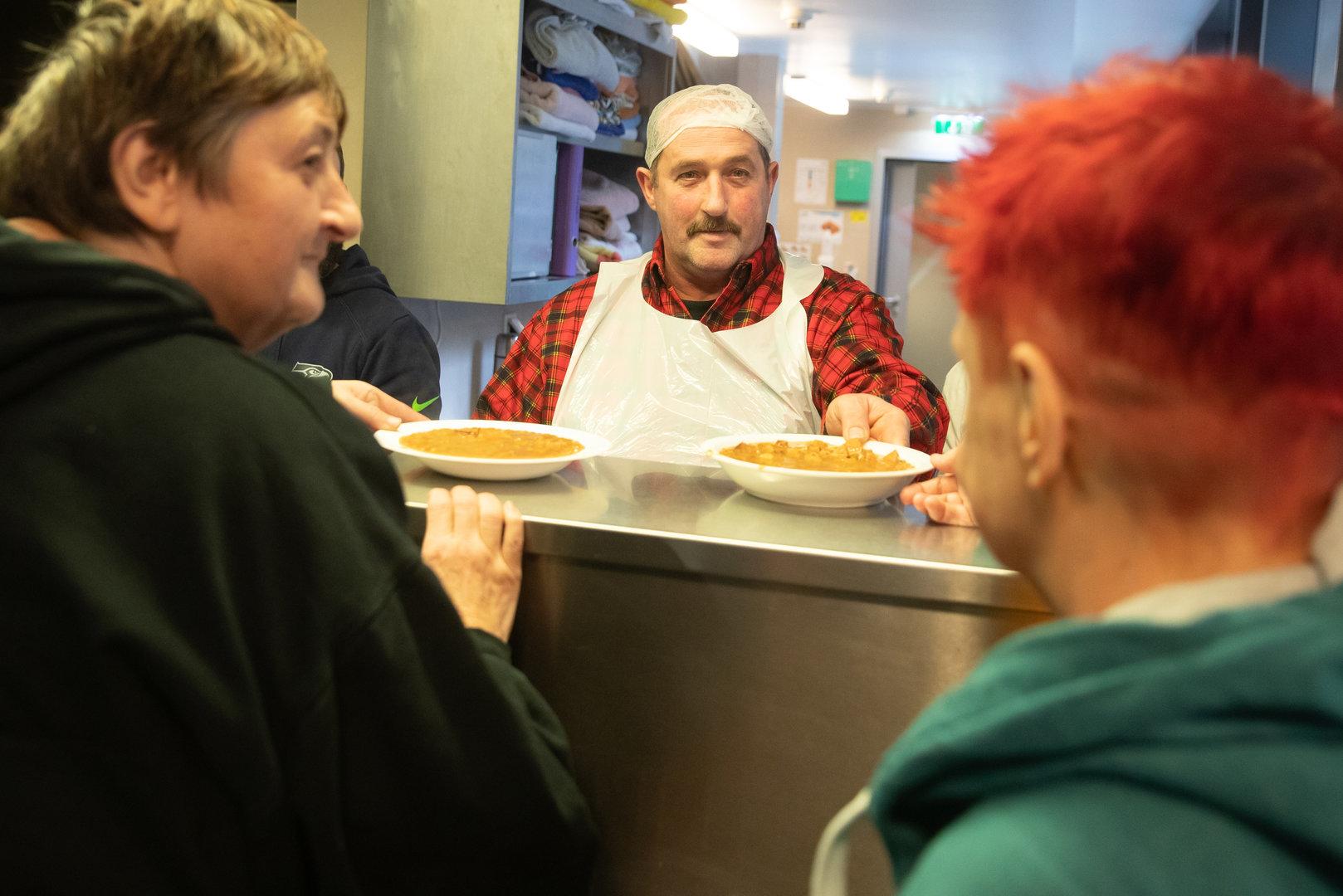 Etwa 400 Portionen Essen werden im Obdachlosenquartier der Caritas Wien pro Tag ausgegeben. 121.409 Mahlzeiten waren es im vergangenen Jahr.