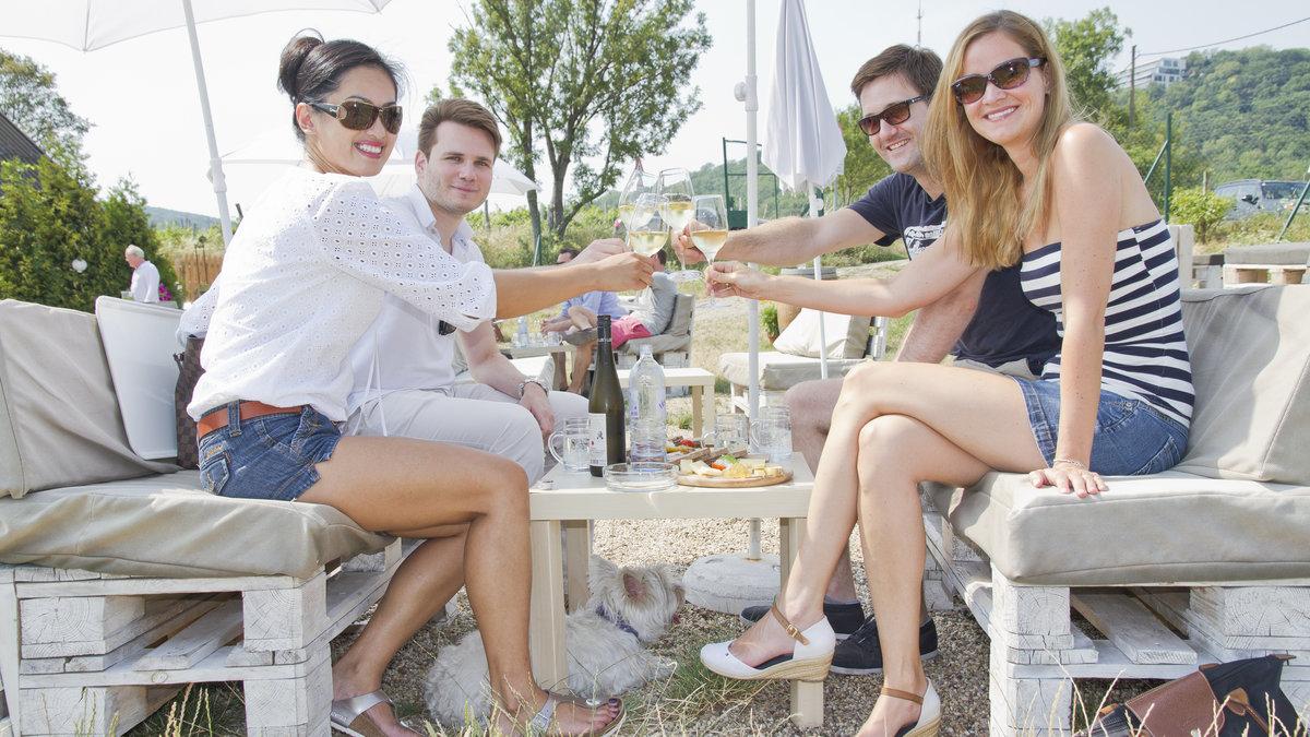 Die Idee, direkt in den Weingärten Achterl auszuschenken, hatte „Mayer am Pfarrplatz“-Geschäftsführer Gerhard Lobner schon länger. Dank einer Buschenschank-Novelle aus dem Jahr 2013 ist es Gästen im Sommer nun tatsächlich möglich, von Freitag bis Sonntag auf Liegesesseln oder auf zu Bänken umfunktionierten Europaletten zu sitzen und Wein zu trinken.