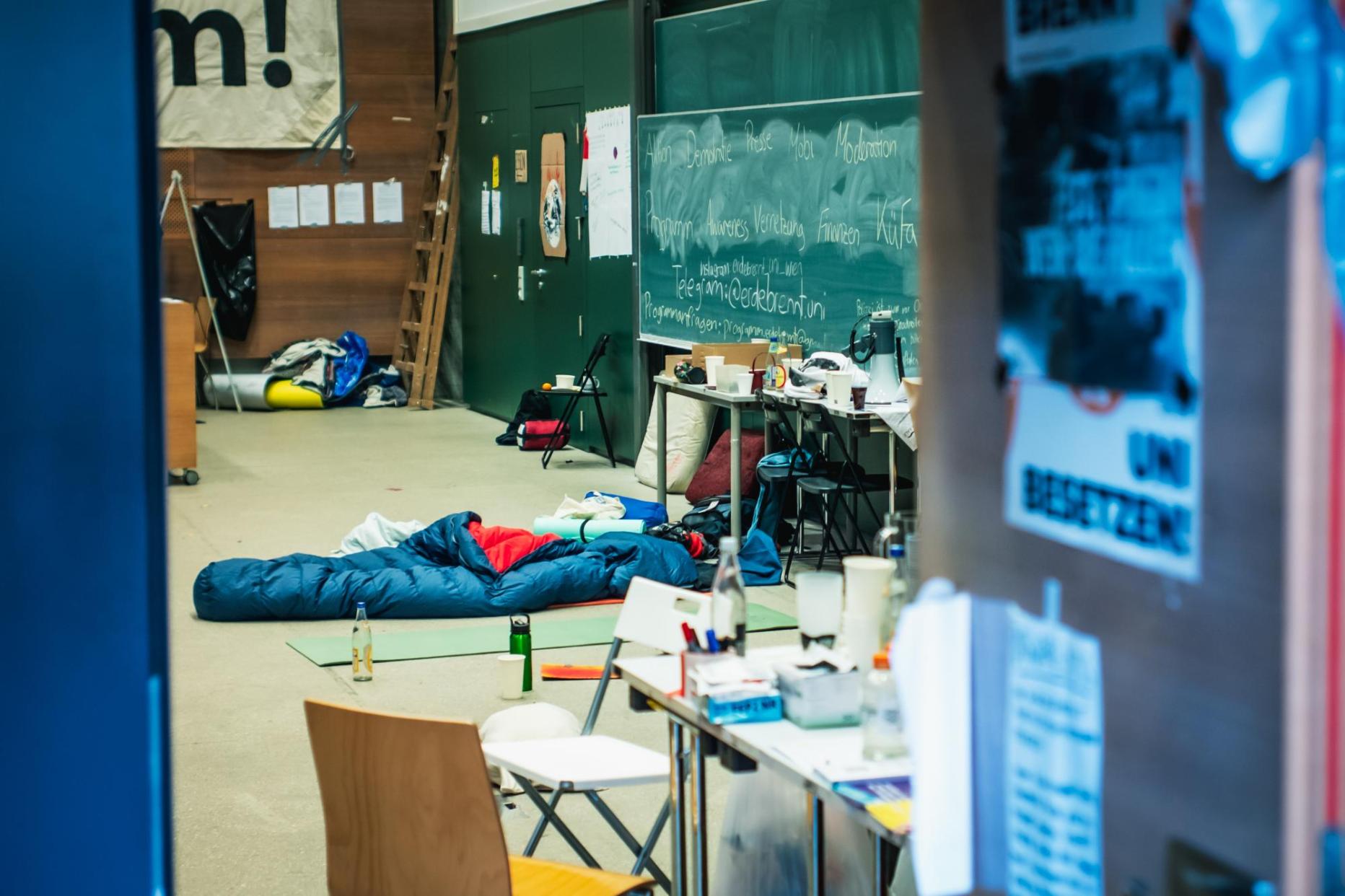 Audimax-Besetzung 2009: Laute Musik, Zigaretten und Alkohol im Hörsaal, Müll in den Gängen und nach und nach auch Obdachlose und Punks, die die Uni Wien als Schlafplatz nutzen. 13 Jahre ist es her, dass die „Uni brennt“-Bewegung zwei Monate lang den Lehrbetrieb blockierte. Man wehrte sich damit gegen die Umsetzung der Master-Studiengänge. Seit über einer Woche „brennt“ es wieder, nun ist es aber - dem Motto gemäß - nicht nur die Uni, sondern die ganze Erde.