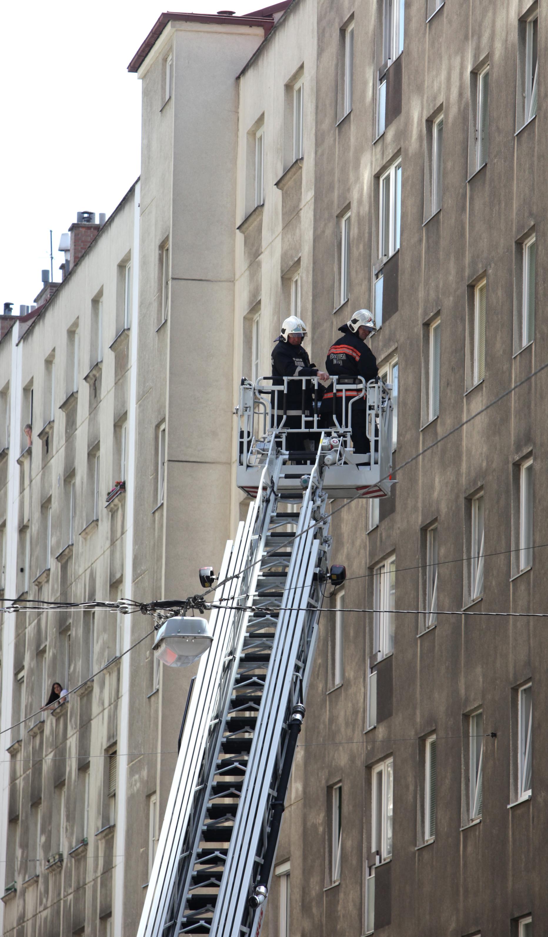 Passanten beobachteten den Vorfall und verständigten die Polizei. Aufgrund der Schilderungen der Zeugen, die einen mittlerweile entkräfteten und verzweifelten Mann an der Hausfassade hängen sahen, wurde vorerst von einem Suizidversuch ausgegangen.