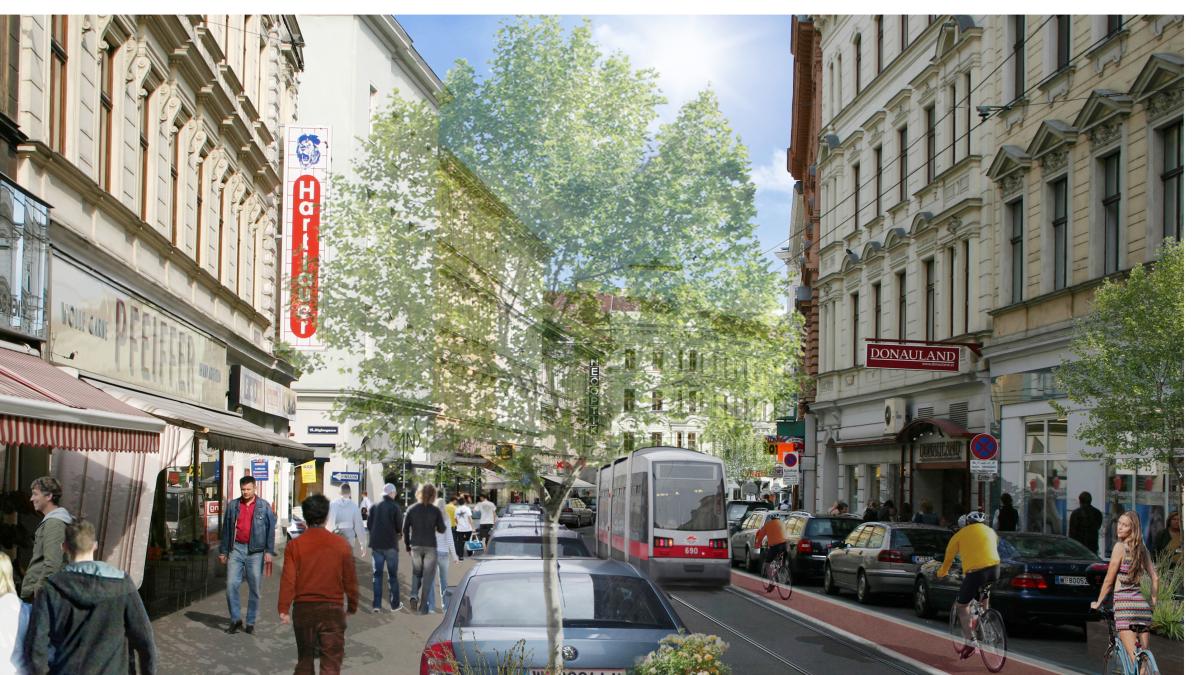 "Dadurch gewinnen wir eine ganze Spur, wodurch Gehsteige verbreitert und ein eigener Radfahrstreifen errichtet werden könnten", sagt Homole. Zusätzlich will der Bezirkschef mehrere Parkplätze opfern, um zwischen den parkenden Autos Grünzonen einrichten zu können.