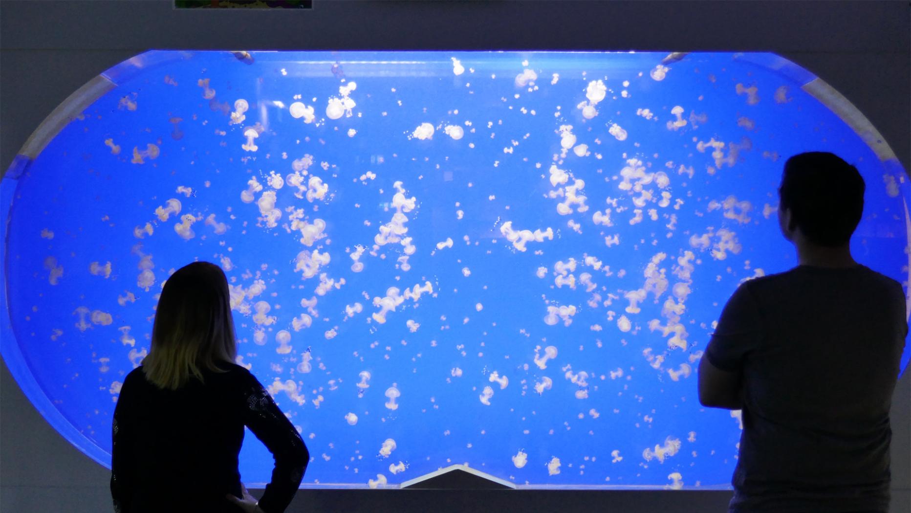 Daneben befindet sich das - laut Angaben des Zoos - größte Quallen-Aquarium Mitteleuropas: Das Kreiselströmungsbecken beherbergt einen Schwarm Gepunkteter Wurzelmundquallen. Drei weitere Becken sind den Lebensräumen Meereshöhle, Gezeitentümpel und Schlammboden gewidmet und zeigen Meeresbodentiere wie Seeanemonen, Austern, Röhrenwürmer, Seespinnen, Schlangensterne und Seeigel. Die anderen Aquarien werden unter anderem von Katzenhaien, Giftfischen und nachgezüchteten Seepferdchen bewohnt.