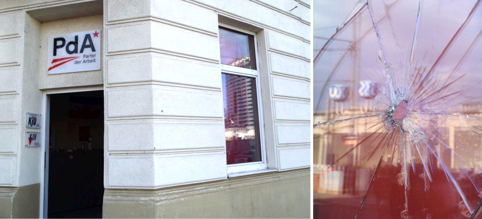 In der Nacht auf Freitag ist in Ottakring die Scheibe eines Lokals beschädigt worden, in dem mehrere kommunistische Organisationen und ein Arbeiterbildungsverein untergebracht sind. Während die Betroffenen von einem "Anschlag" sprachen und diesen "vermutlich Rechtsradikalen" zuschrieben, hieß es seitens der Polizei, es gebe derzeit keinen Hinweis auf ein politisches Motiv.