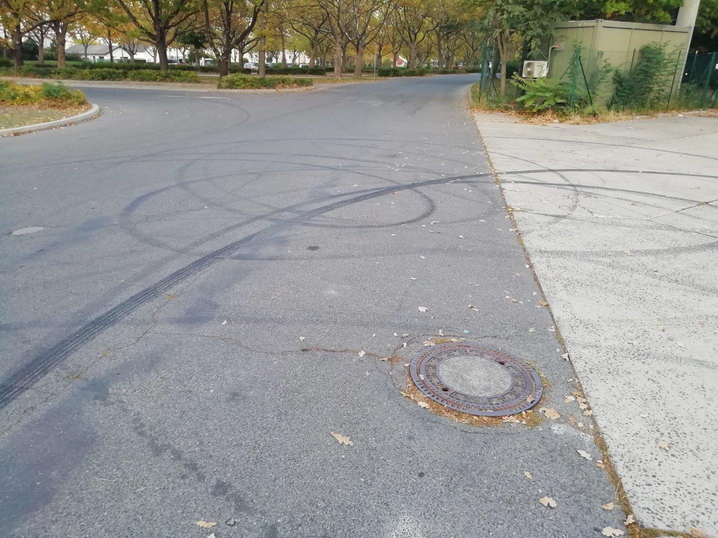 Reifenspuren auf einem Busparkplatz in der Favoritner Filmteichstraße
