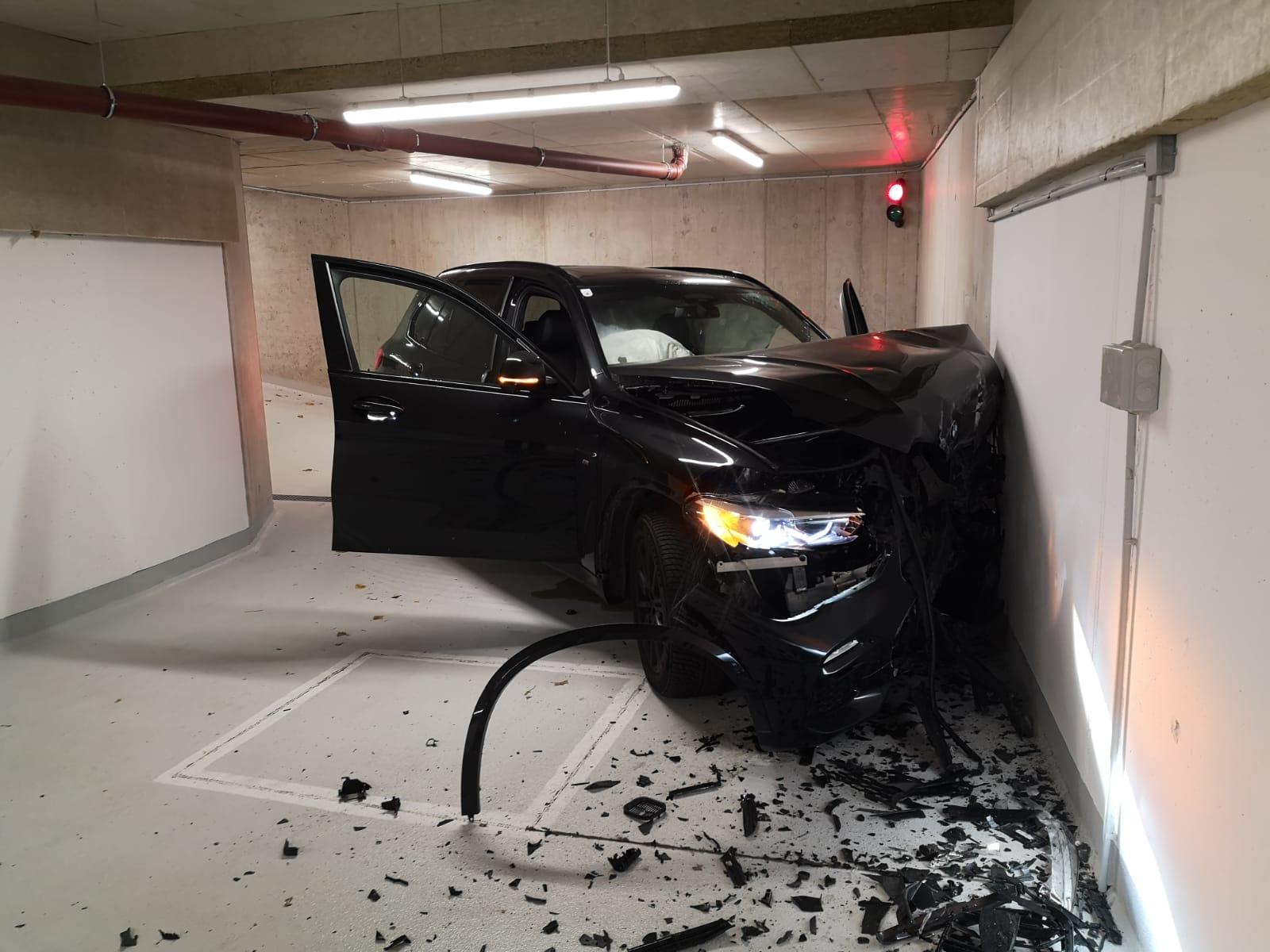Wien-Donaustadt: Das Fahrzeug kam erst im Untergeschoß zum Stillstand, als es gegen die Garagenwand prallte.